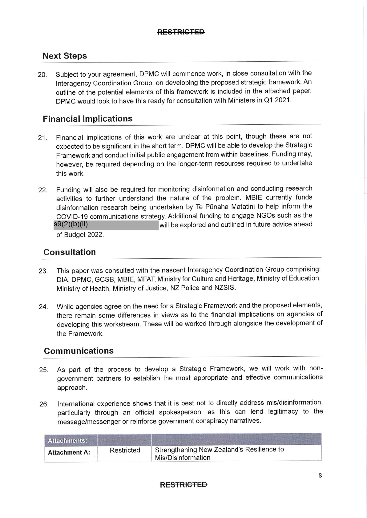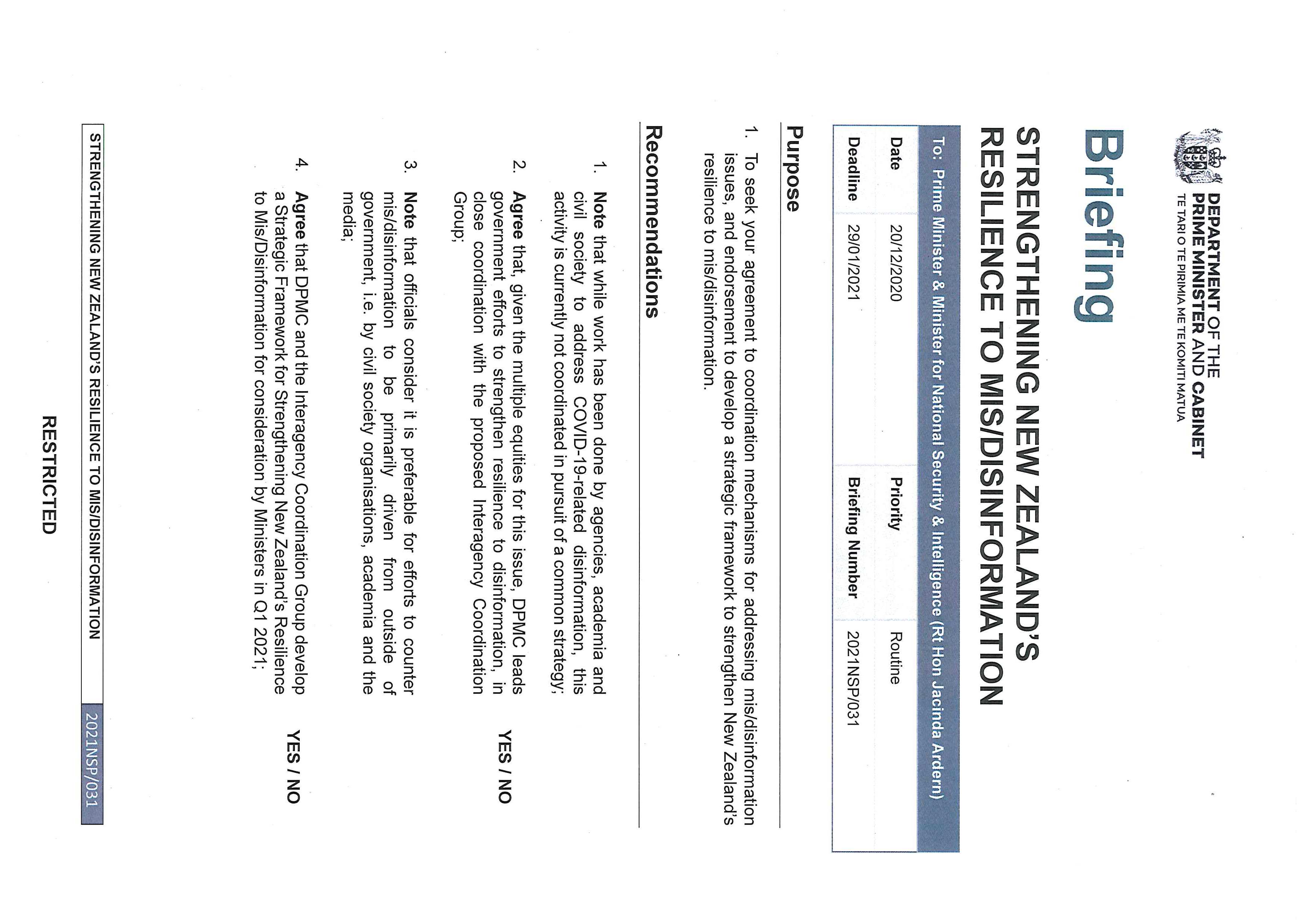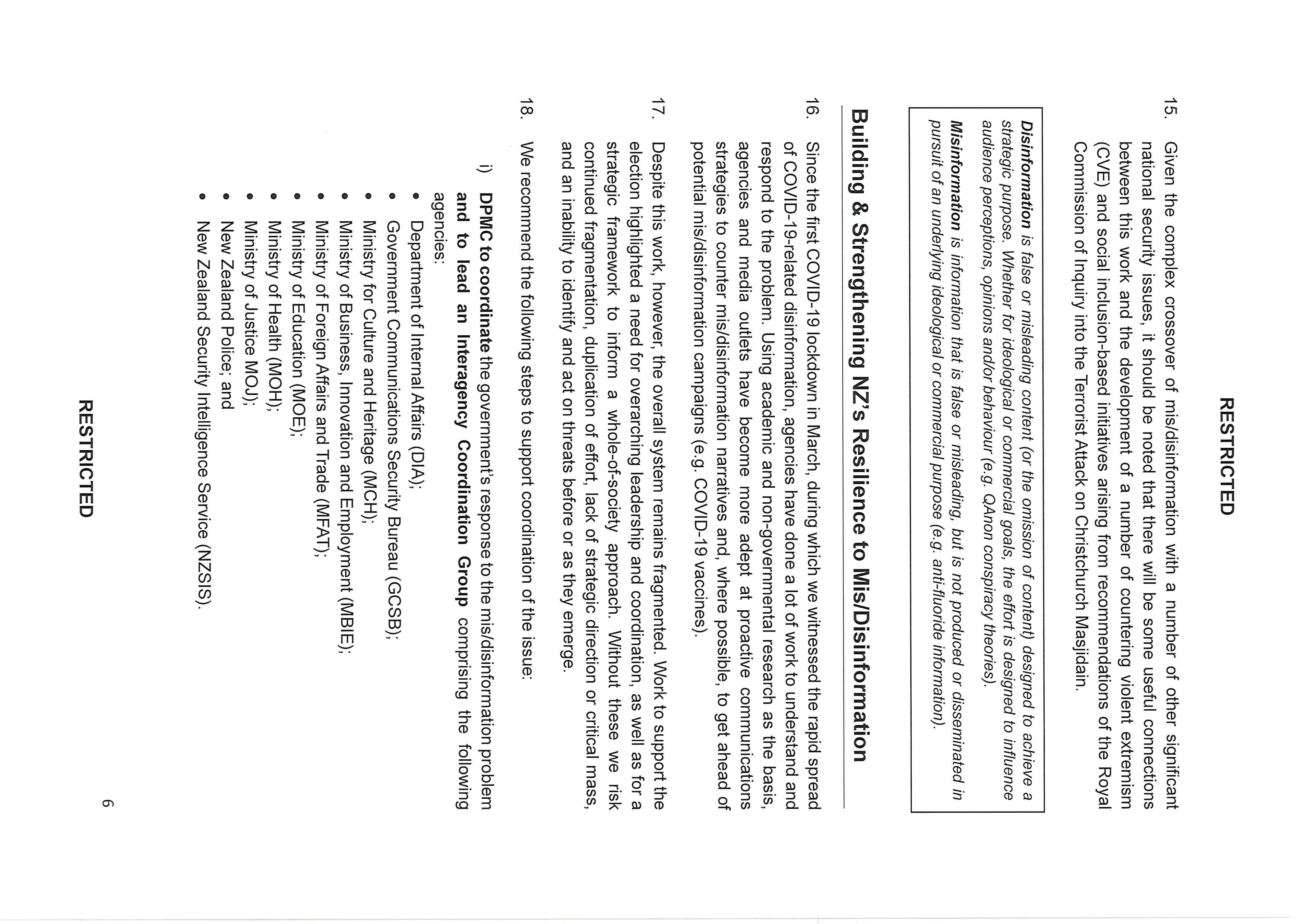 disinformation. And looking ahead DIA, with the Ministry for Culture and Heritage (MCH),