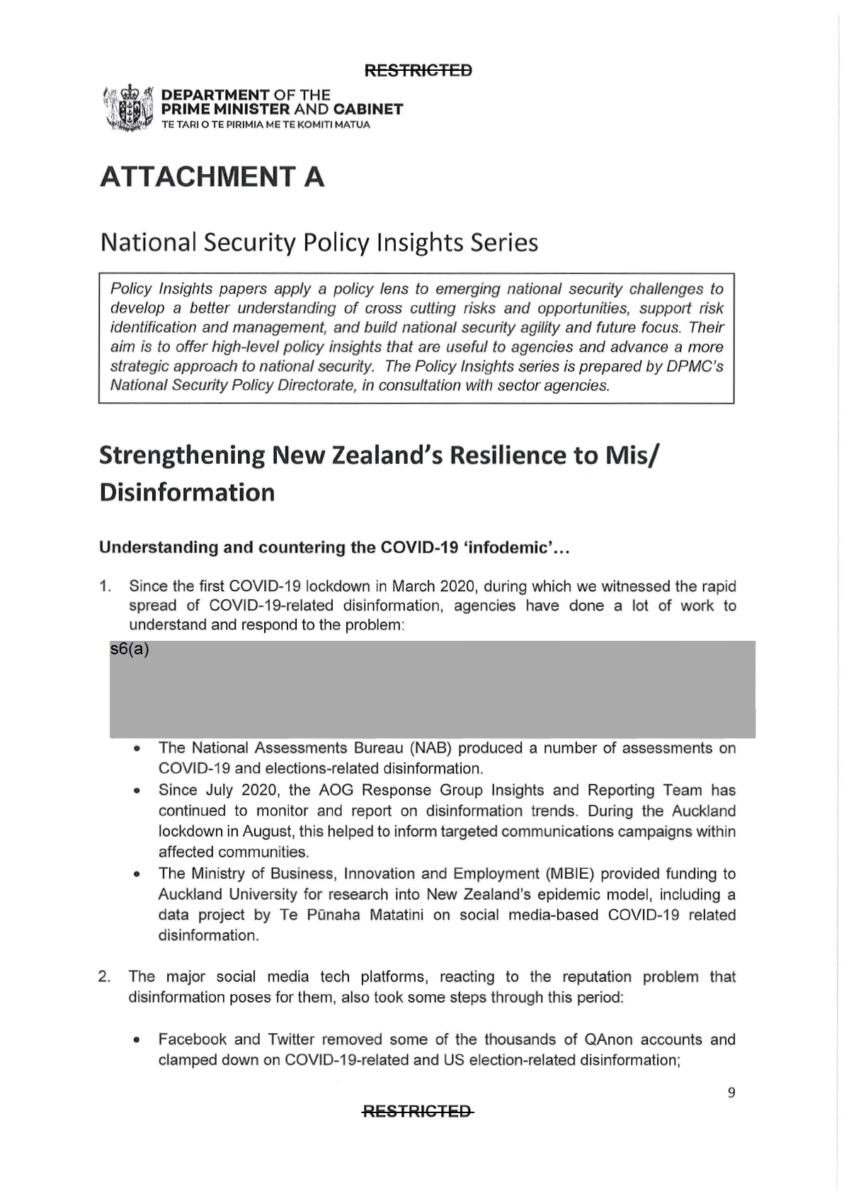 support on disinformation and related issues. s6(b)(ii)