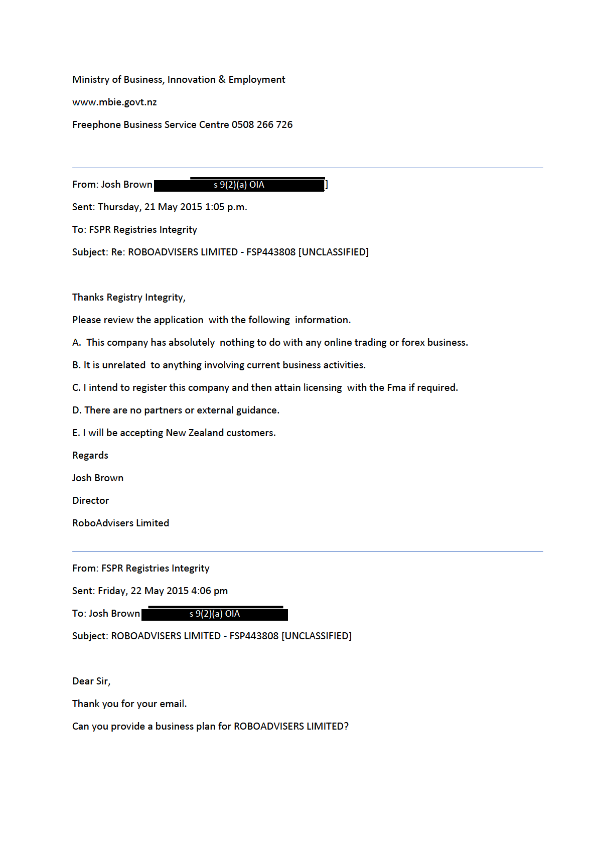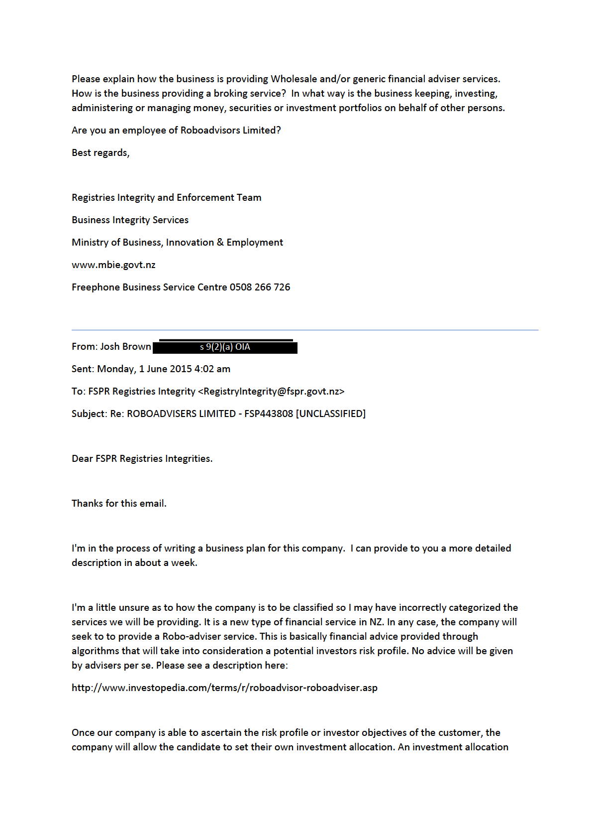 Subject: ROBOADVISERS LIMITED - FSP443808 [UNCLASSIFIED]