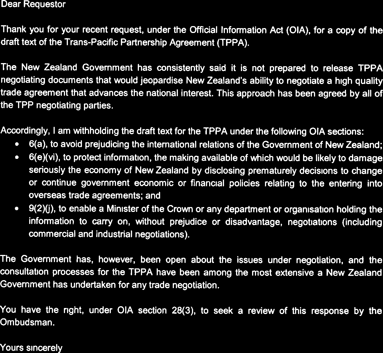 A copy of The TPPA Text
