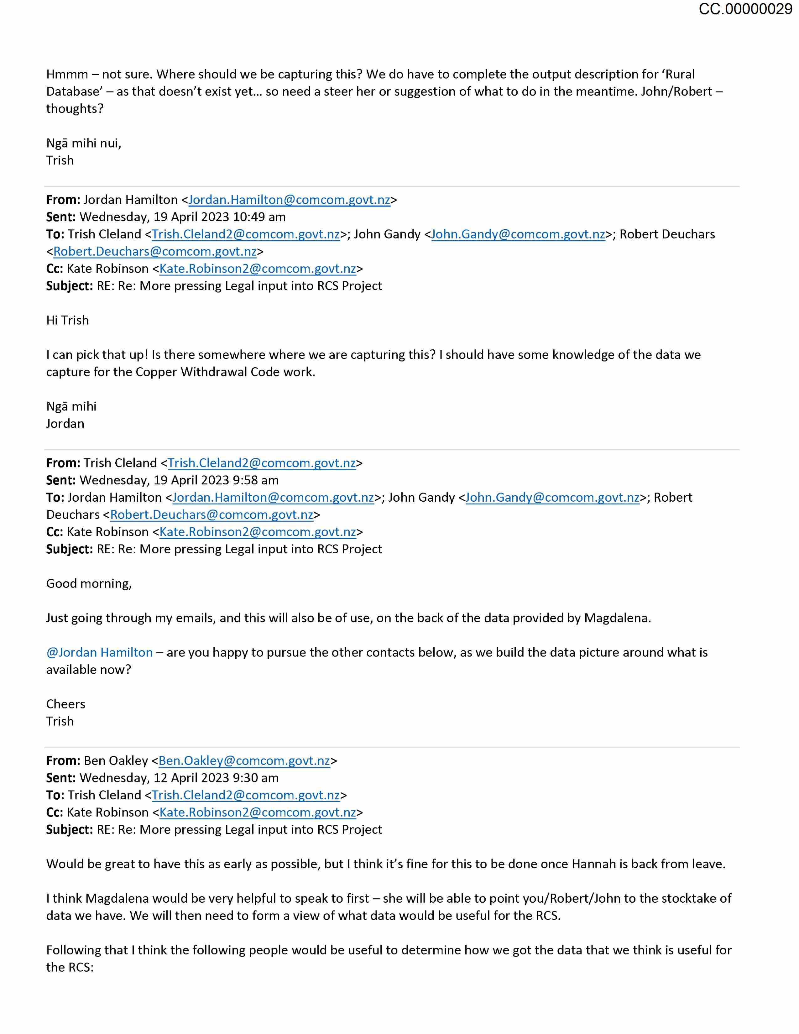 Rural Connectivity Study - Internal communication and Legal advice