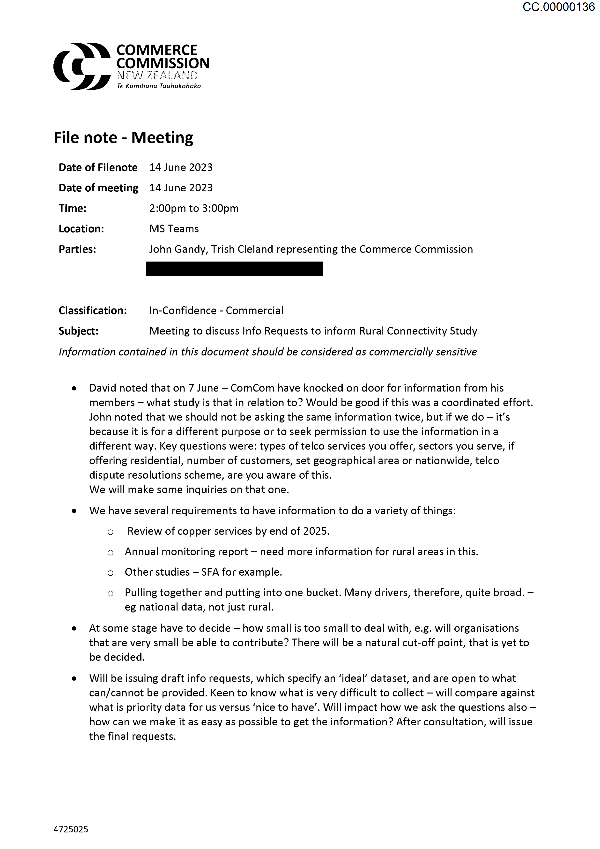 Rural Connectivity Study - Internal communication and Legal advice