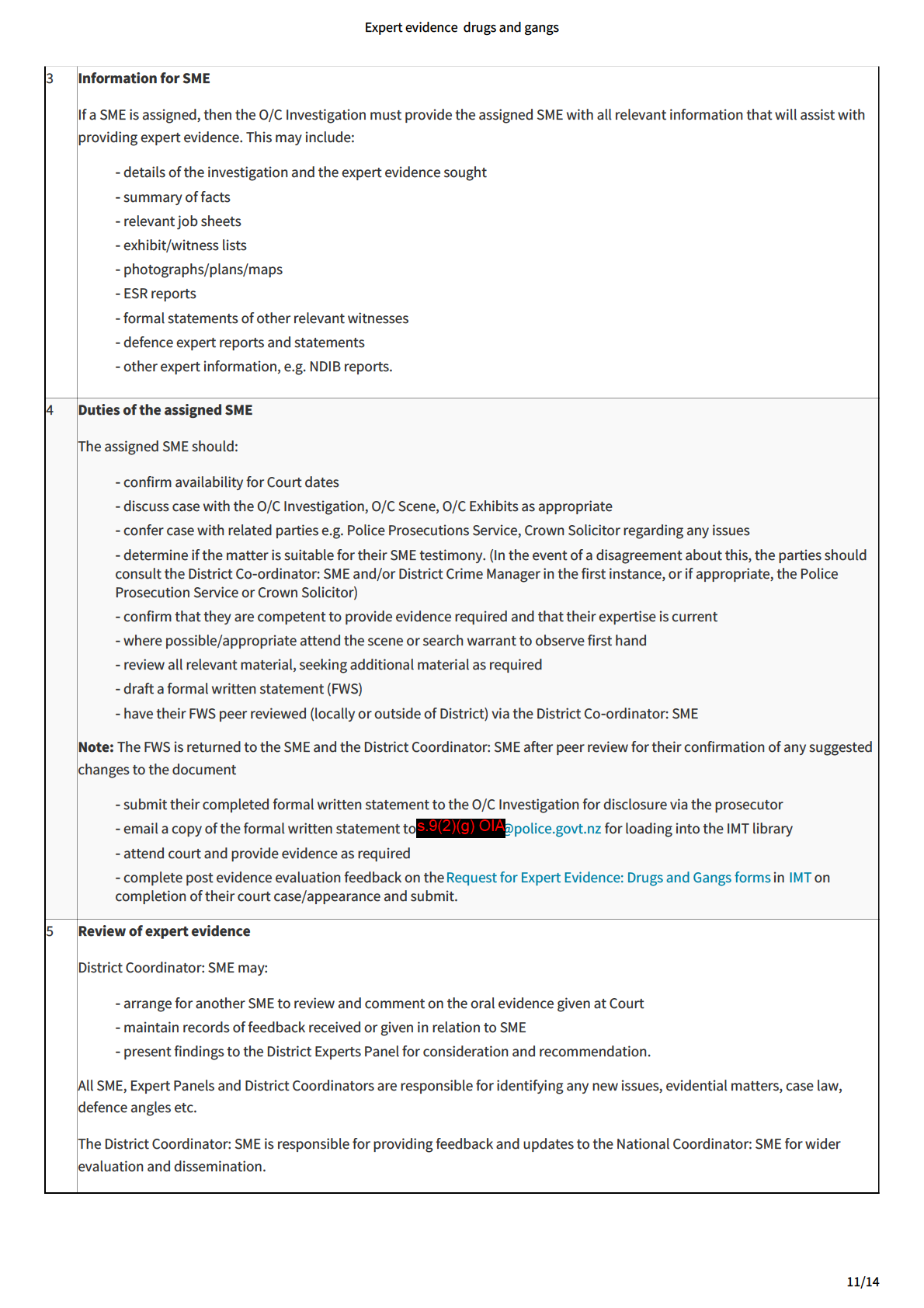 placed on the Police national ‘Drugs and Gangs Expert Register’ and their currency and competency as an expert witness is actively