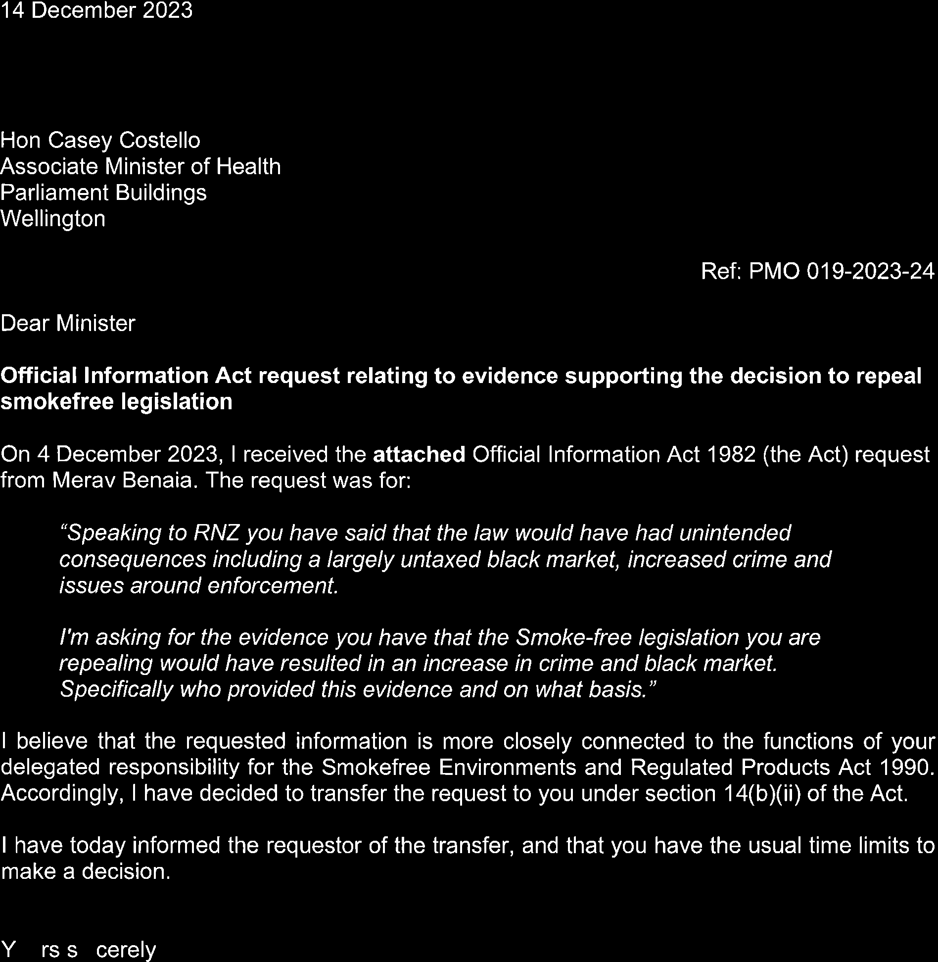 Evidence for repealing smoke free legislation