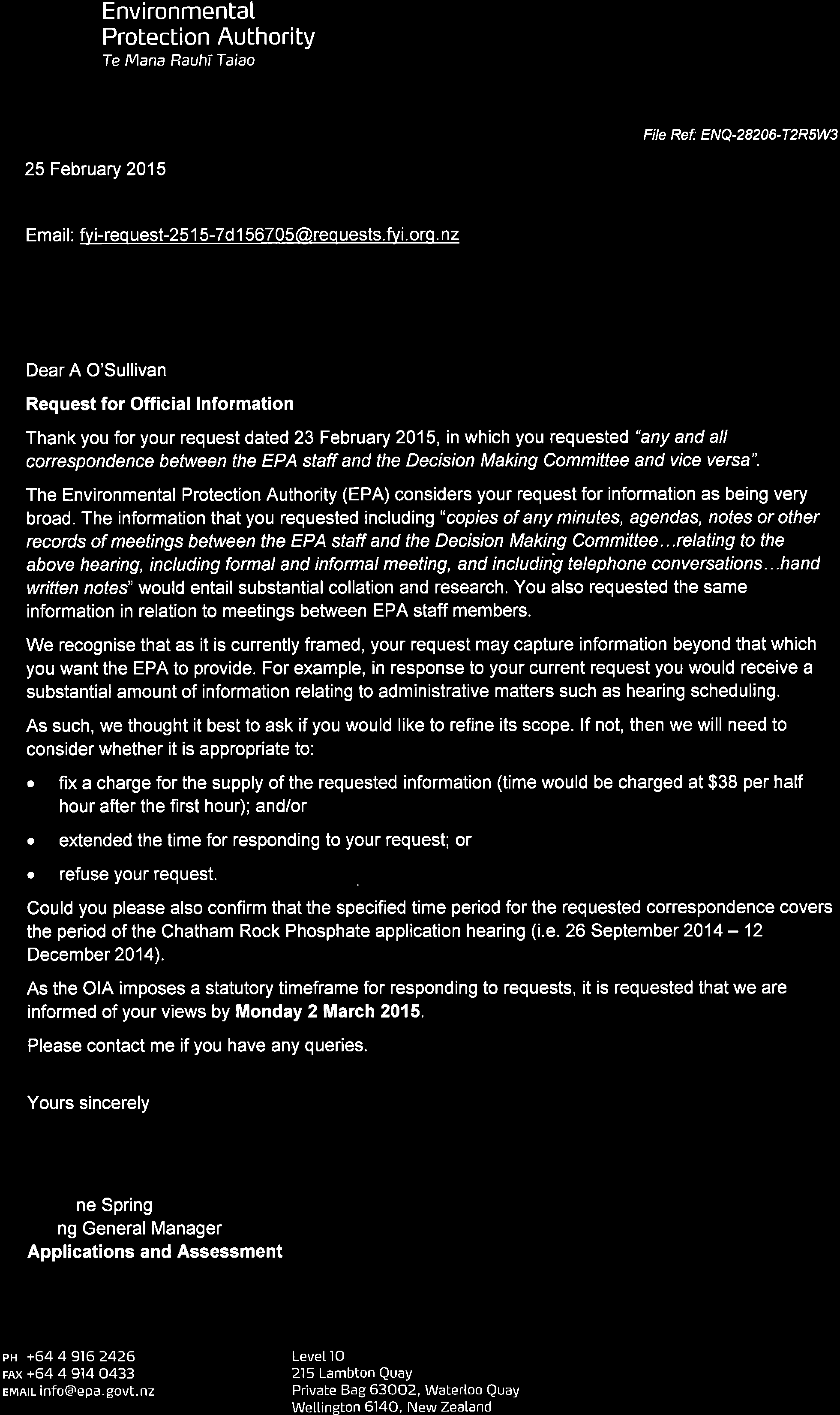 Chatham Rock Phosphate application - interactions between EPA staff and the Decision Making Committee