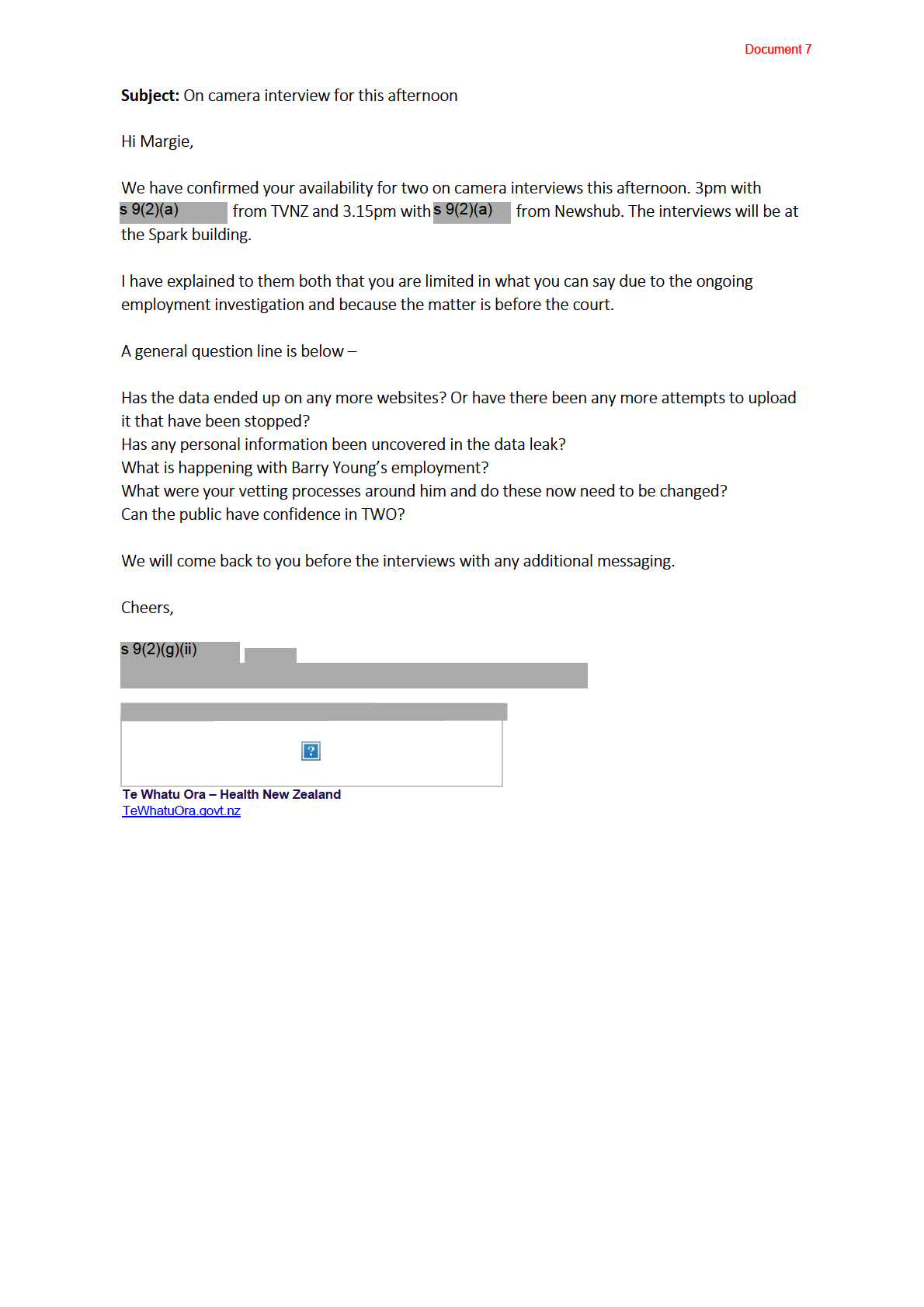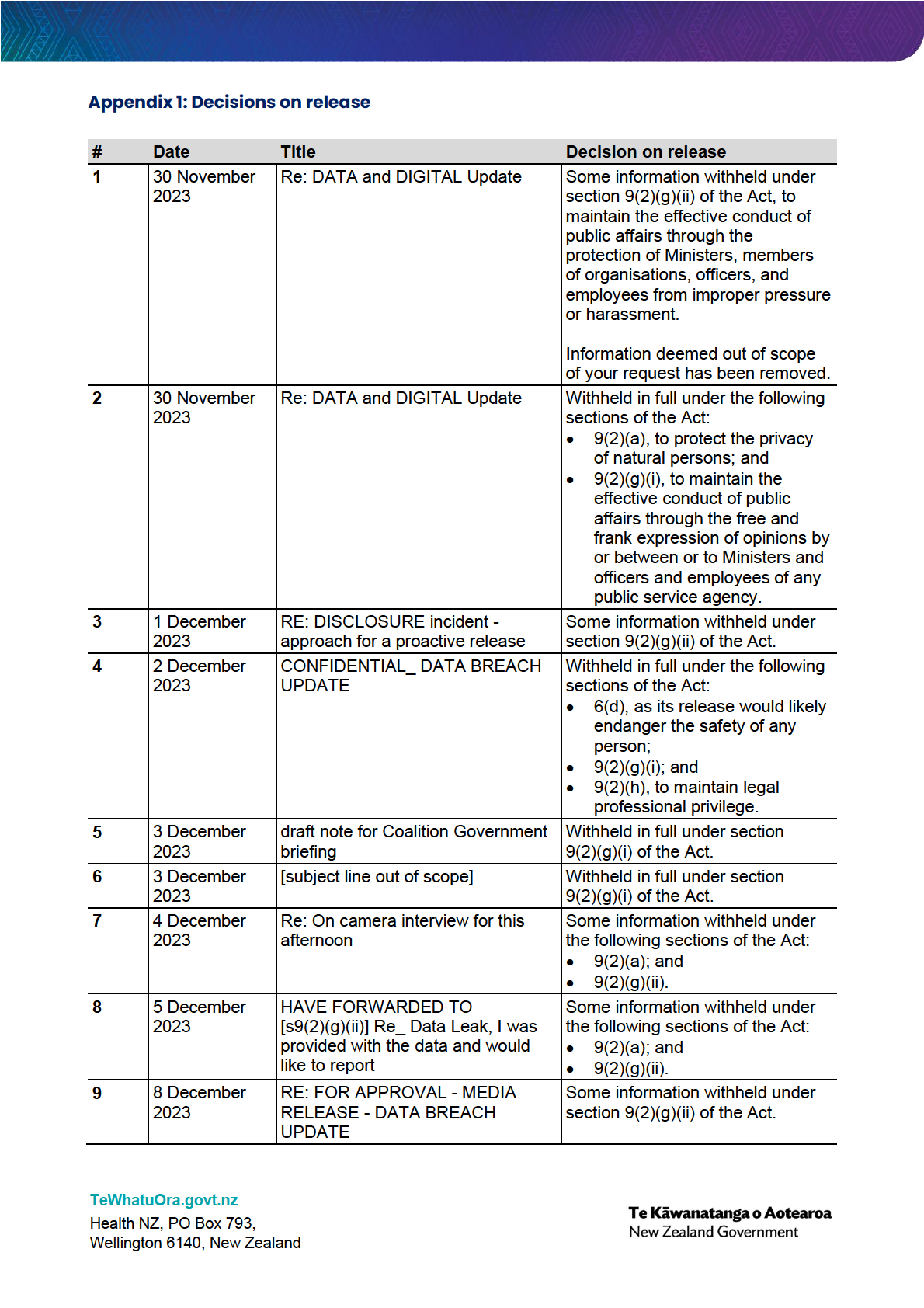 Health NZ has identified nine emails in scope of your request. Please find these itemised in