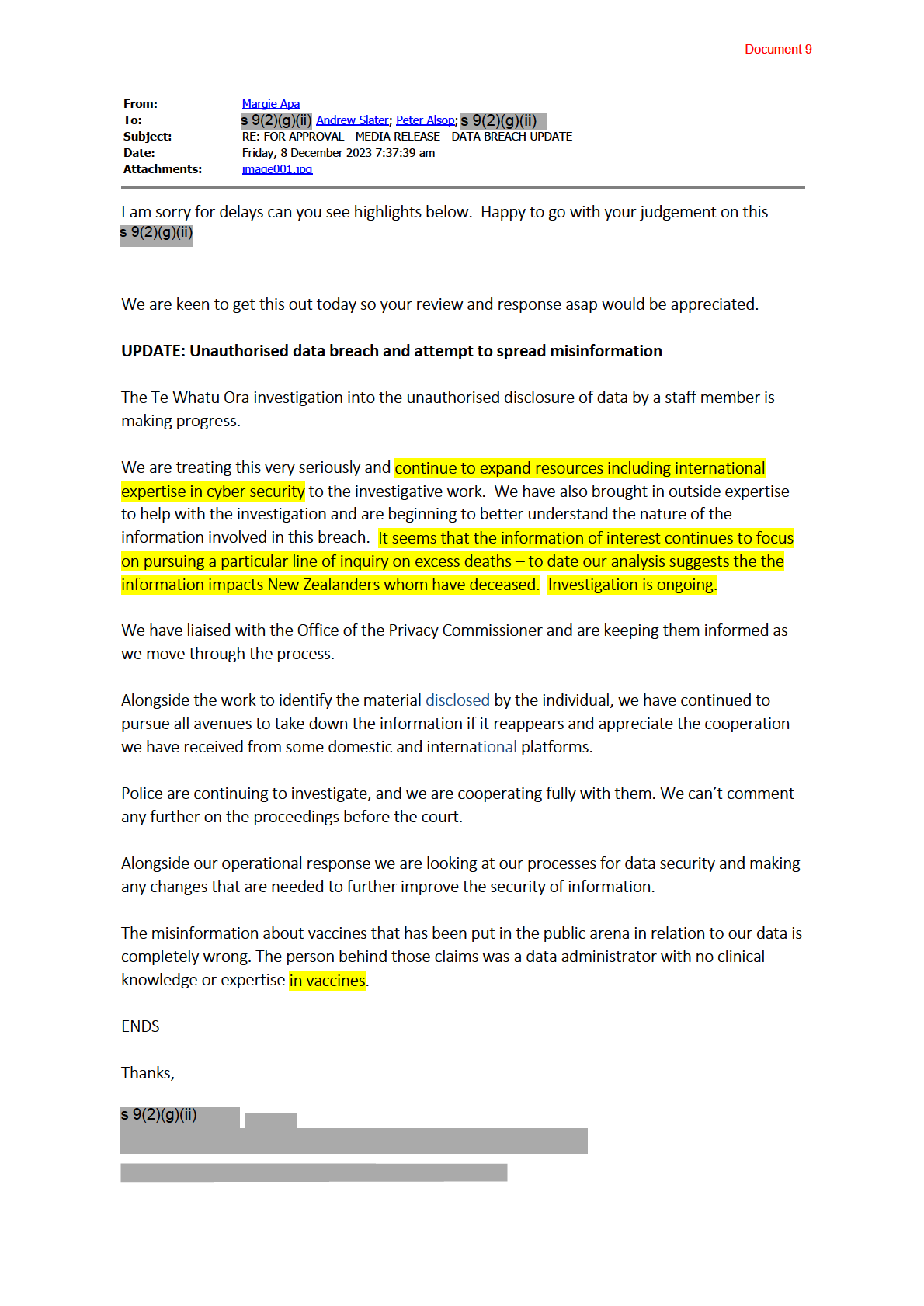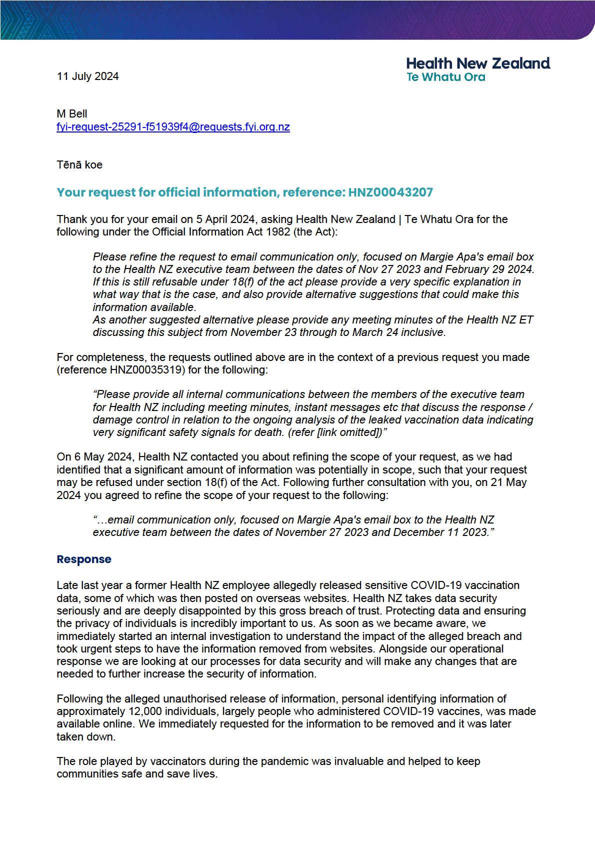 As this information may be of interest to other members of the public, Health NZ may proactively