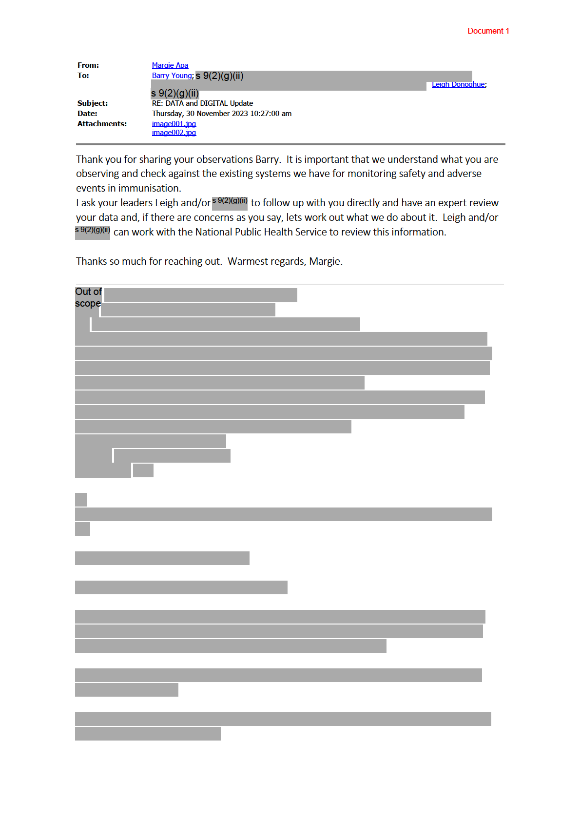 You will note information is withheld under section 9(2)(g)(i) of the Act. Particularly in the early