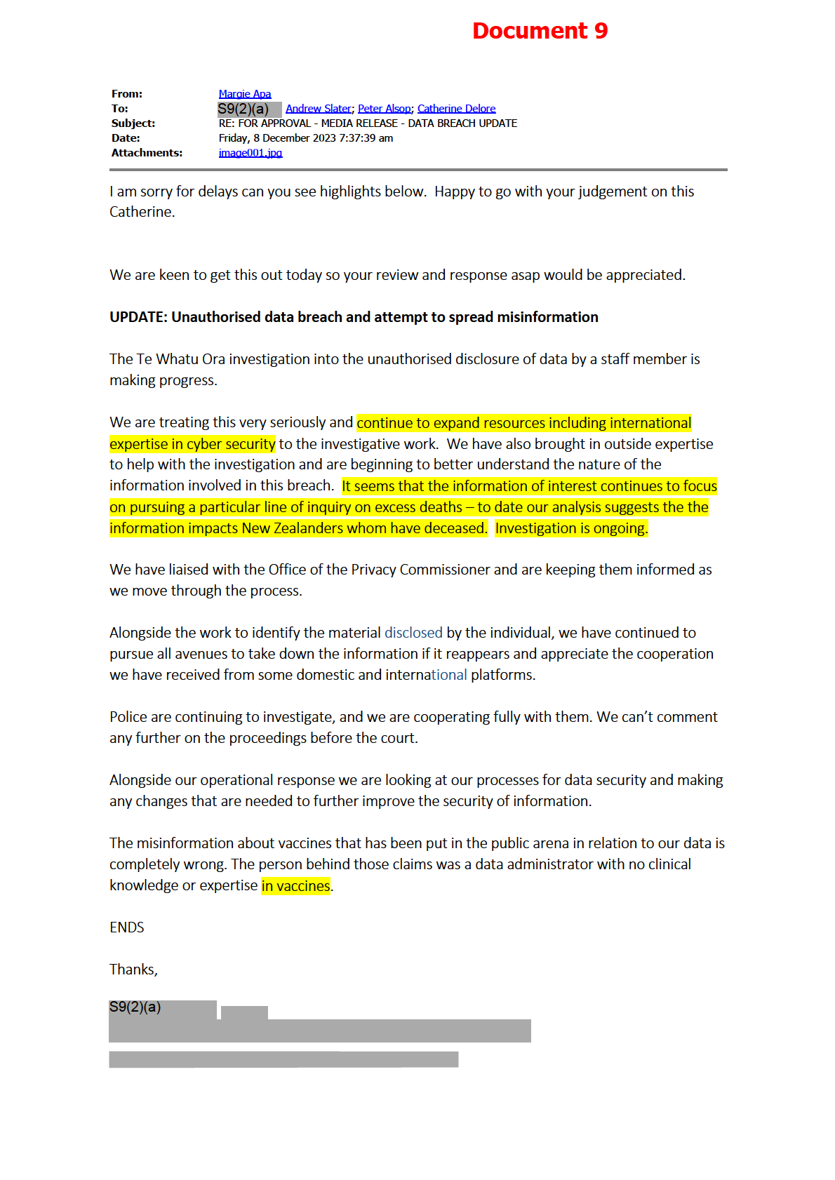 Hi – please see below for the suggested approach to a proactive release on this – it is a different