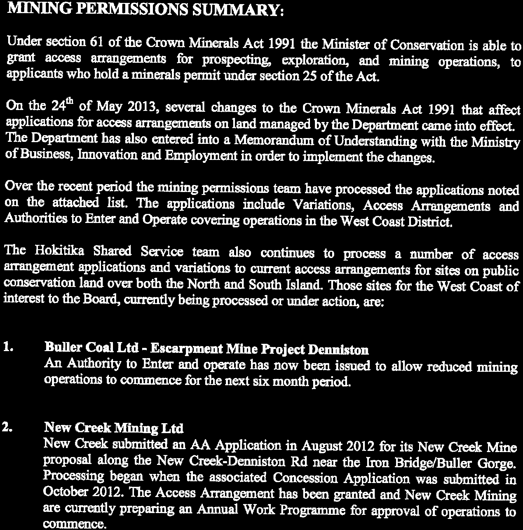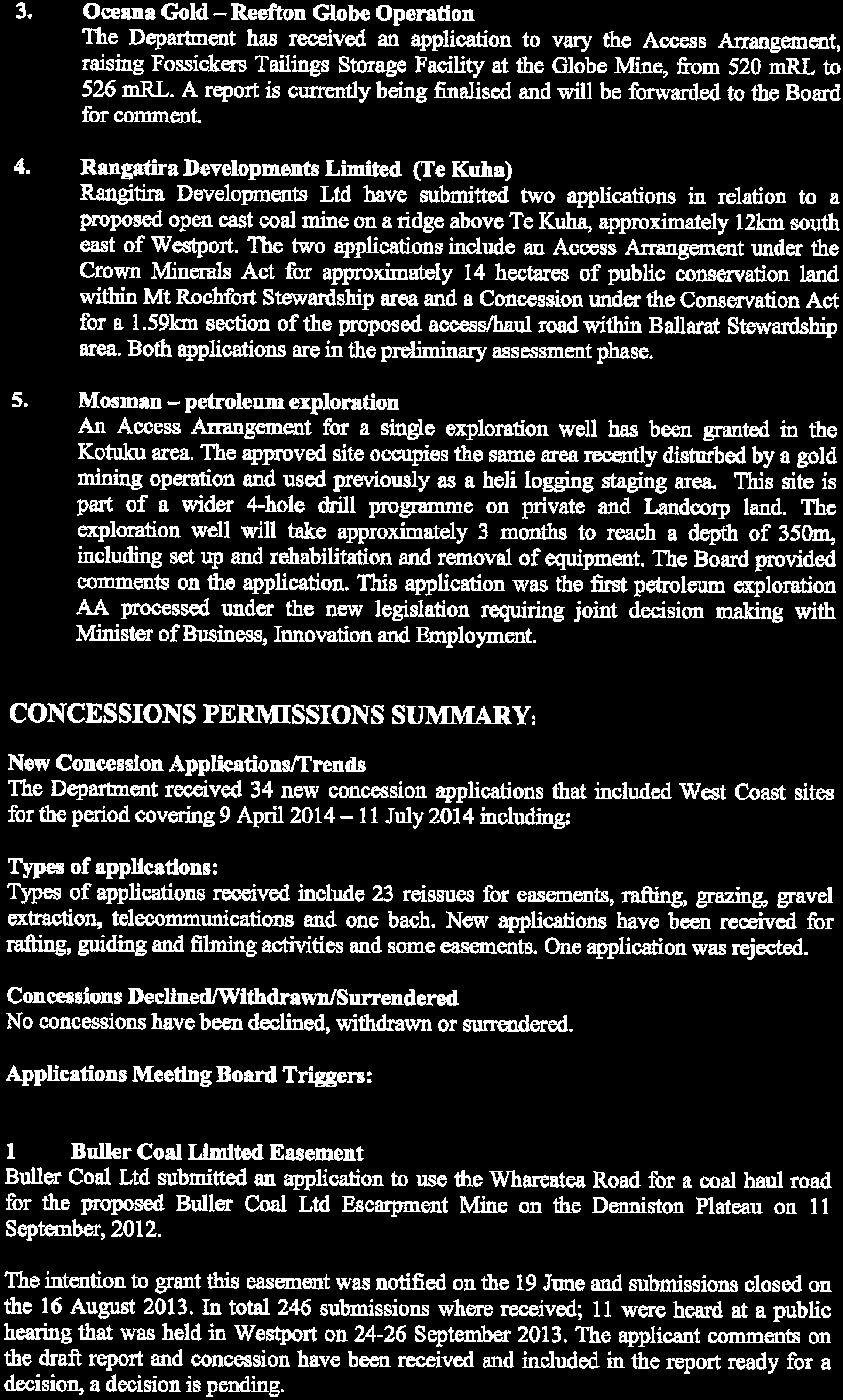 A Department of Conservation report to the West Coast Conservation Board on Friday, 25th July, 2014 related to the proposed Te Kuha Mine.