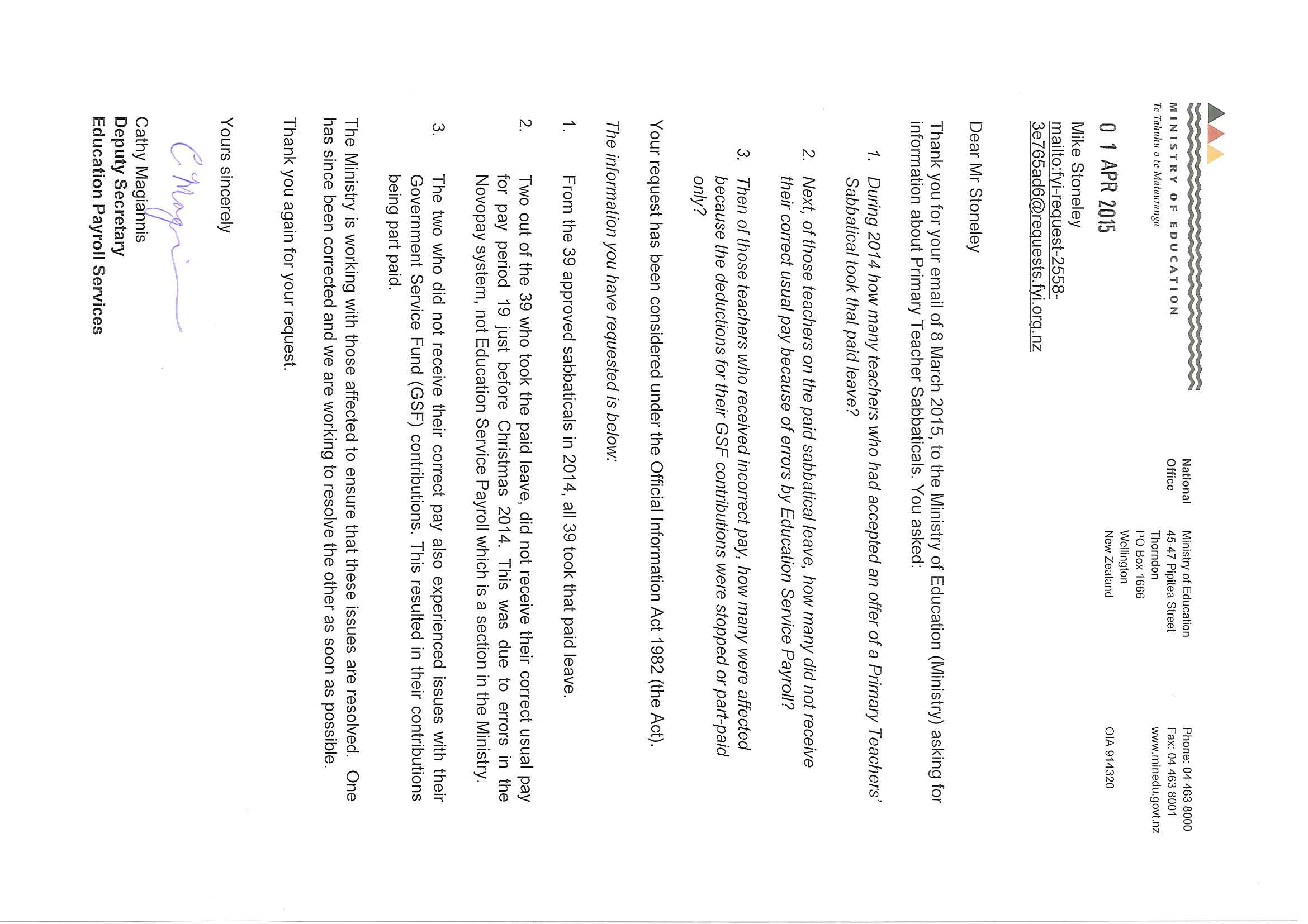 Incorrect salary payments for those Primary Teachers on Sabbatical Leave in 2014