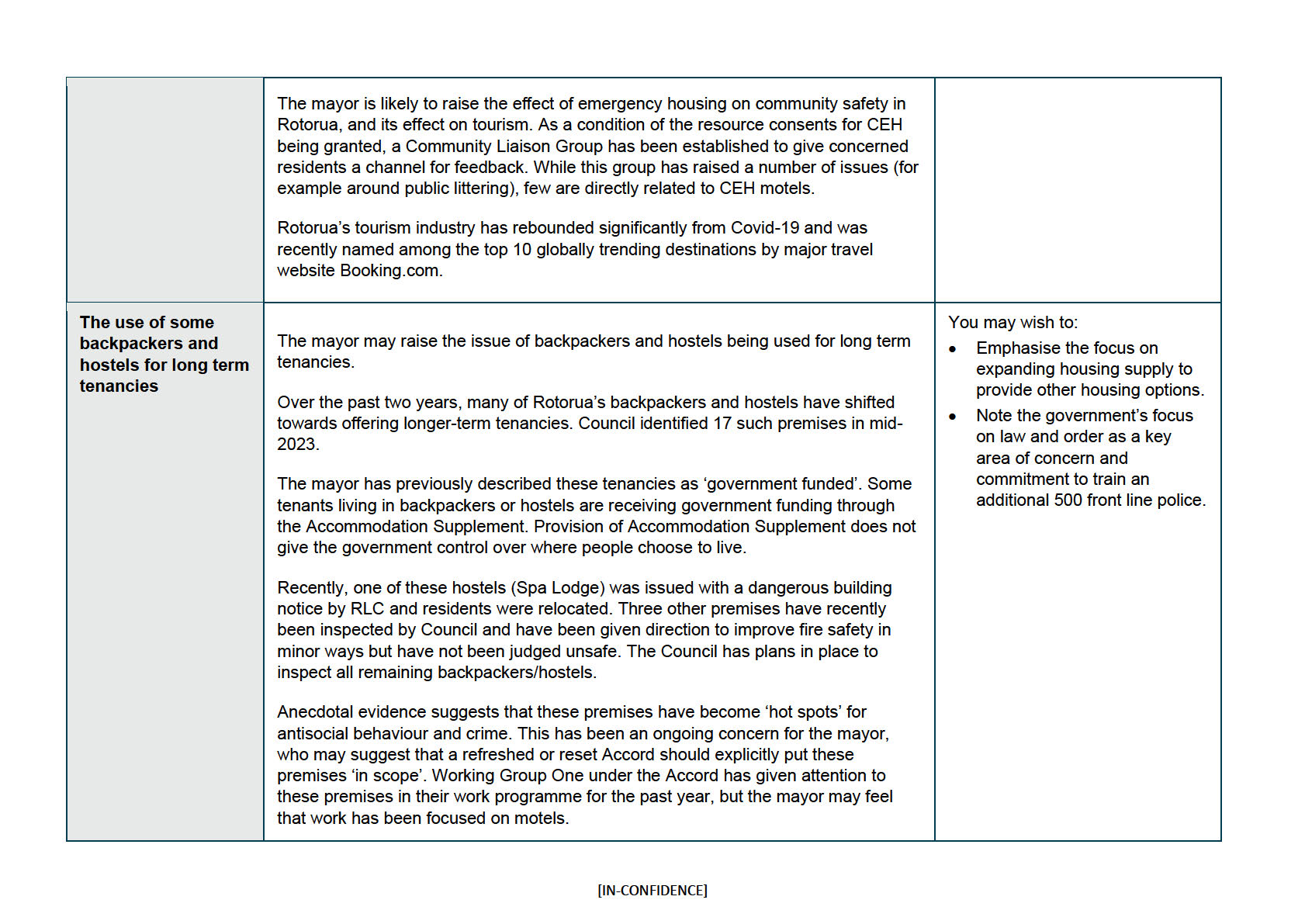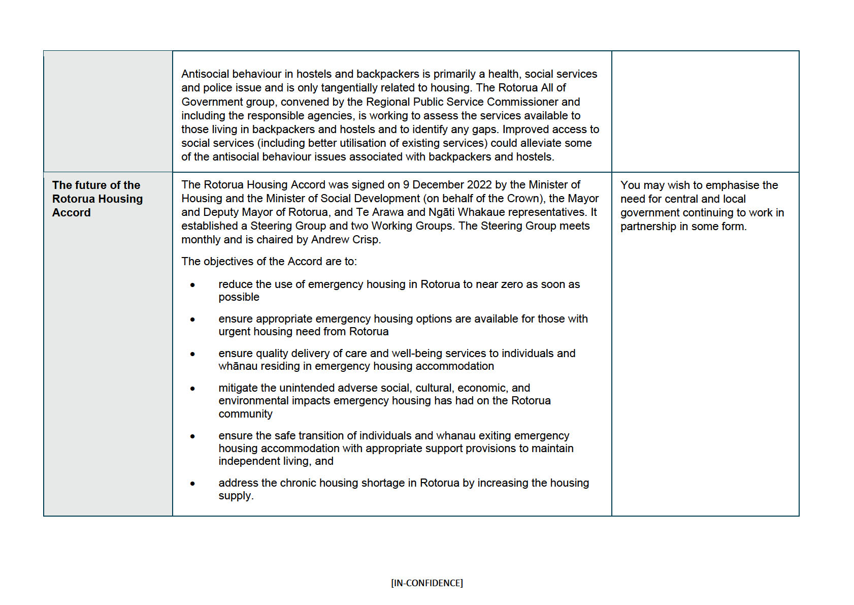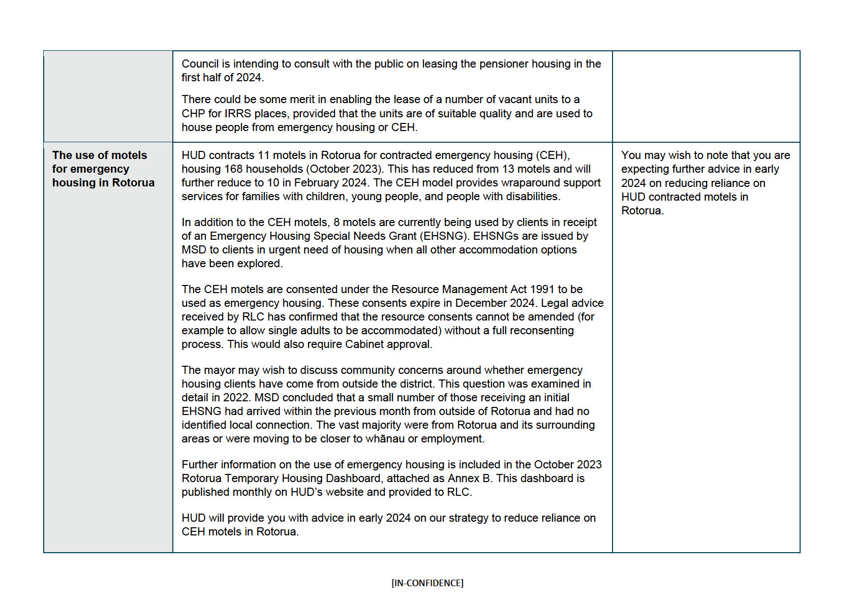In June 2021, Cabinet agreed to fund a series of actions to improve the provision of emergency housing in Rotorua,
