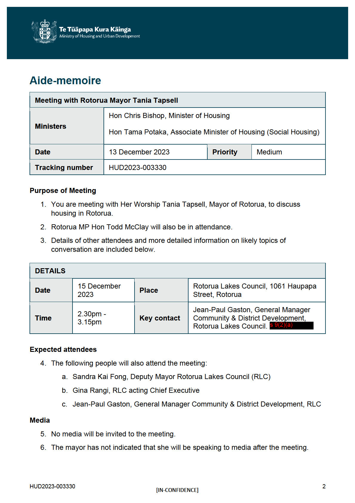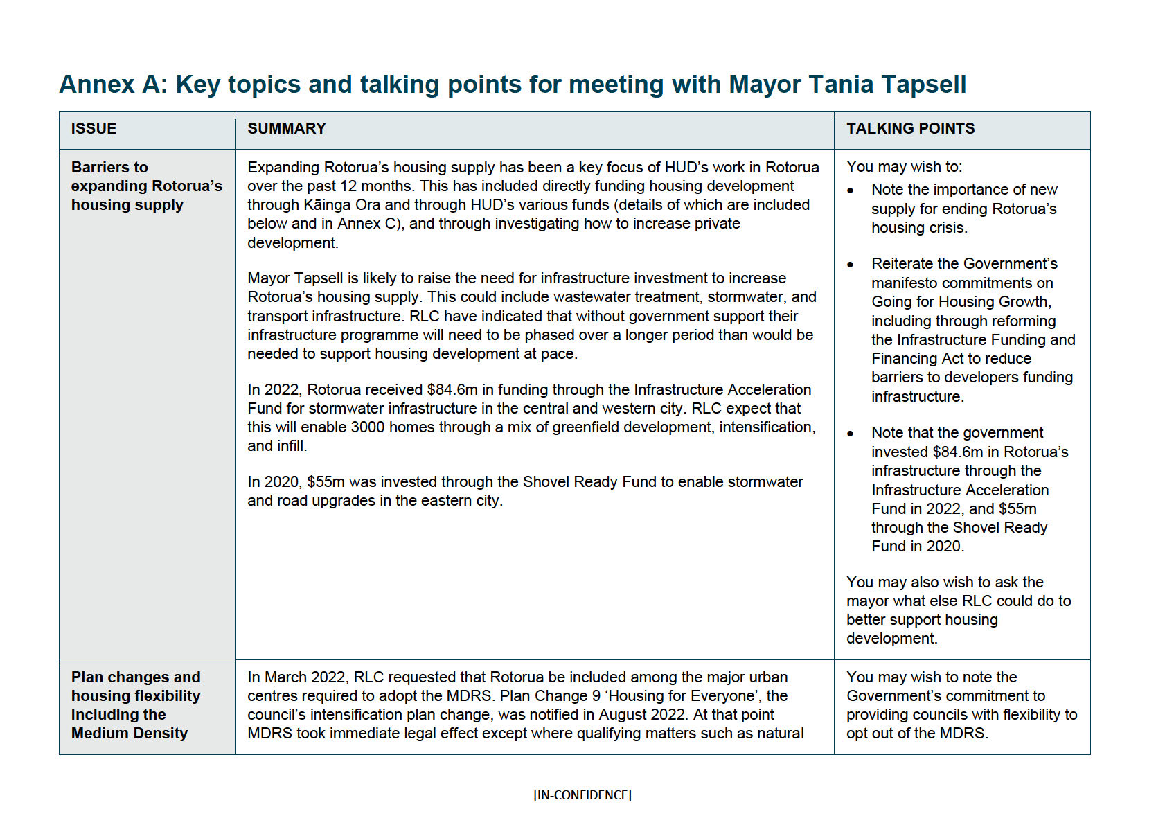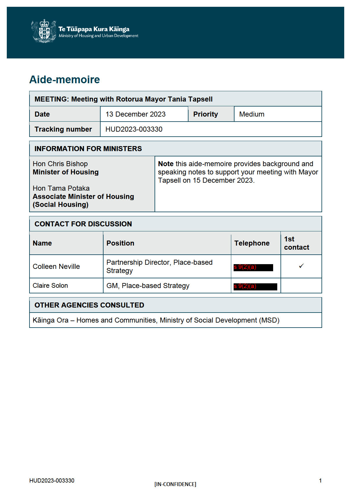 In June 2021, Cabinet agreed to fund a series of actions to improve the provision of emergency housing in Rotorua,