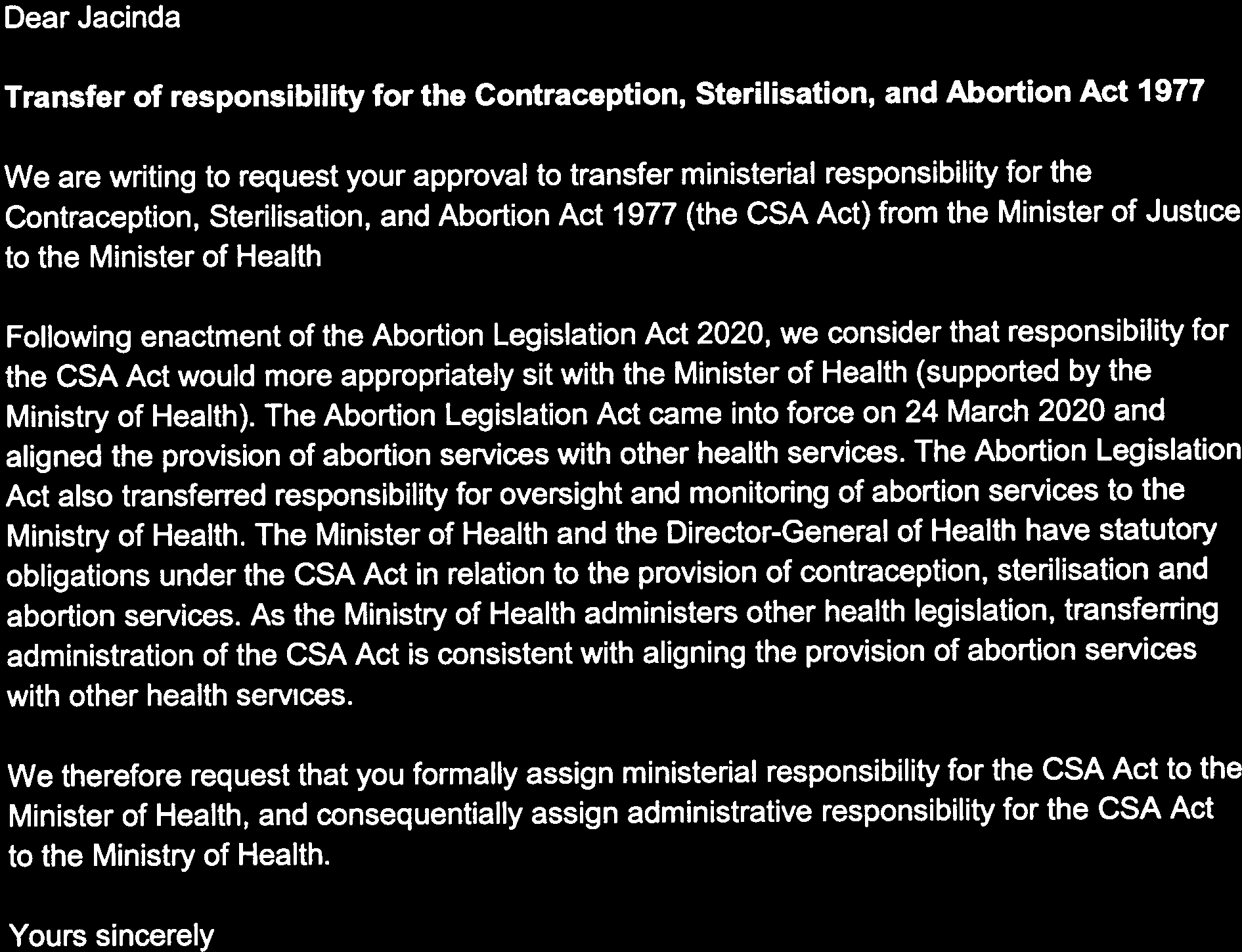 (the Act), information regarding the Abortion Legislation Act 2020 (ALA Act). Specifically, you