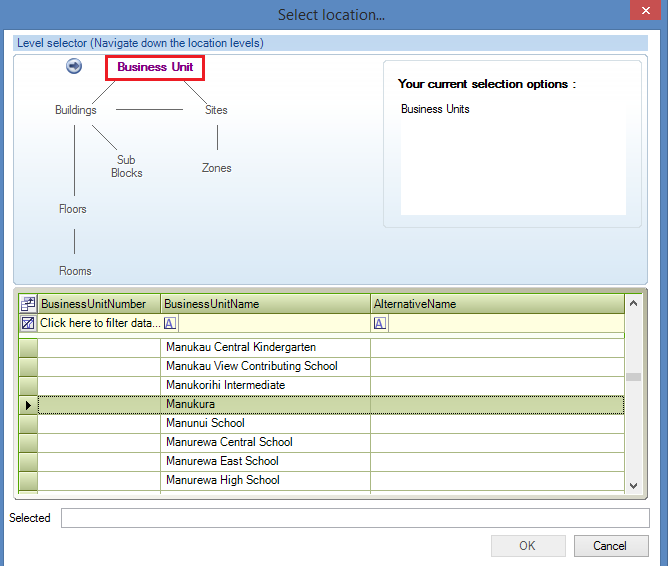 1. Select Business Unit, highlight the business unit from the list and double click