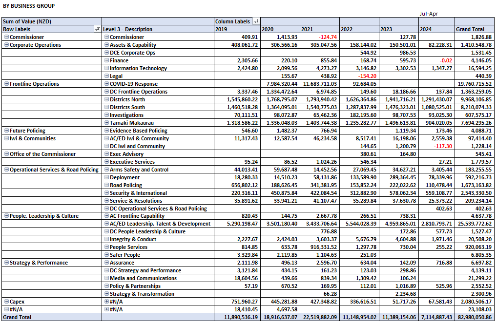 APPENDIX 1 - Total amount spent, broken down by Police workgroups, per financial year for Lockheed Martin (as at 4 June 2024)