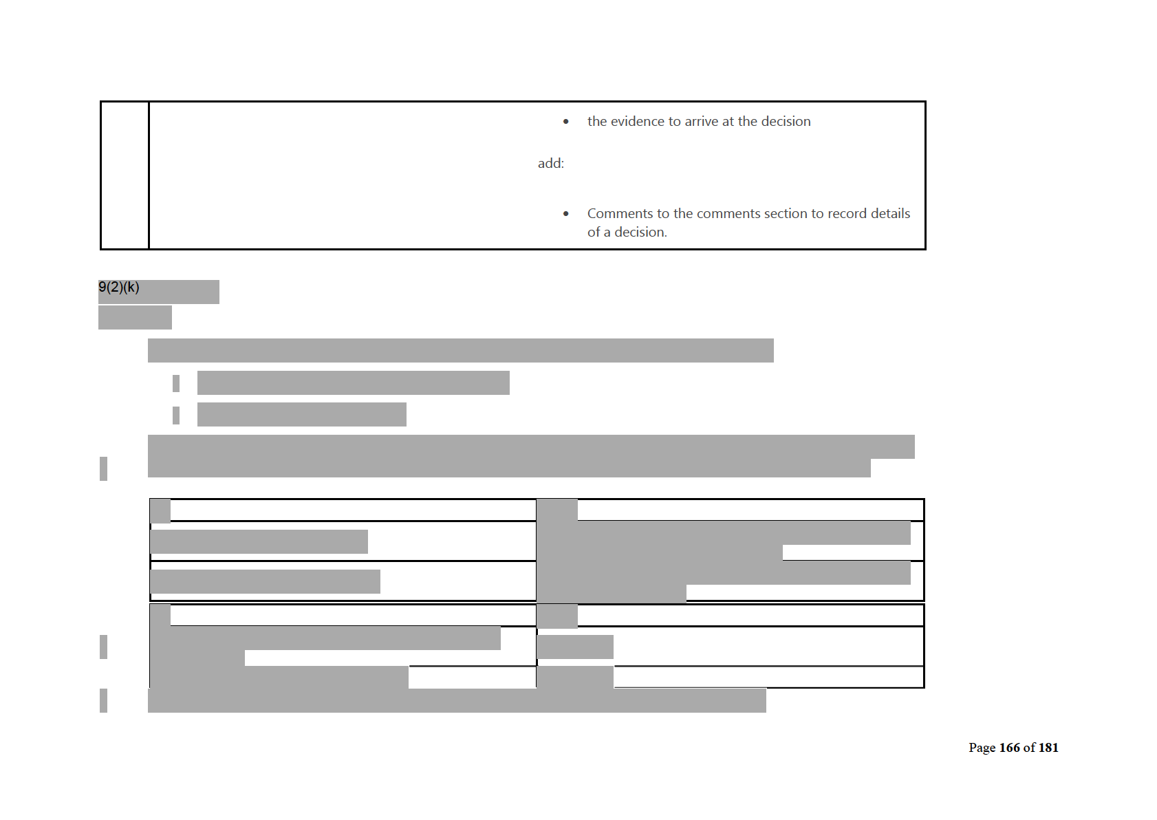 outcome, criteria, comments and
