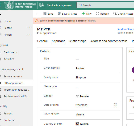 used by Citizenship to process a citizenship application.