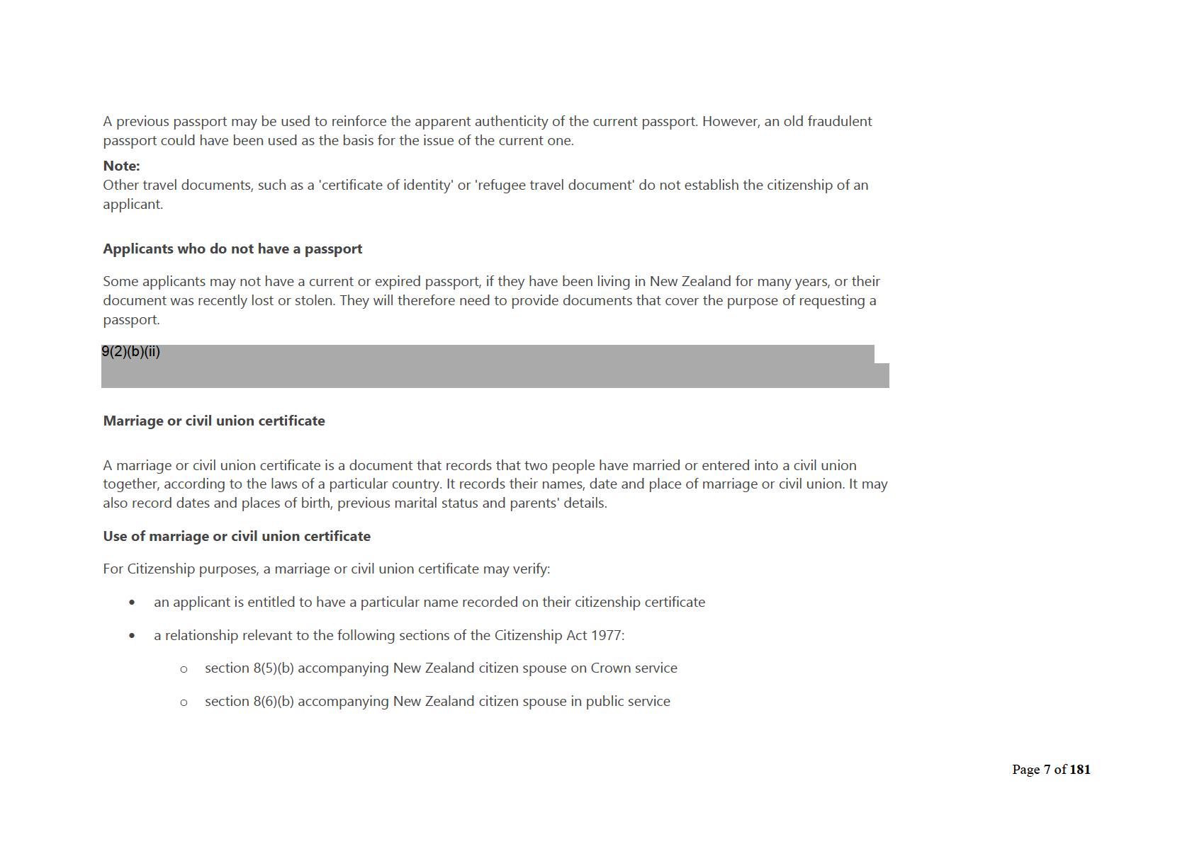• Policy – Grant of citizenship by reason of exceptional circumstances and public interest