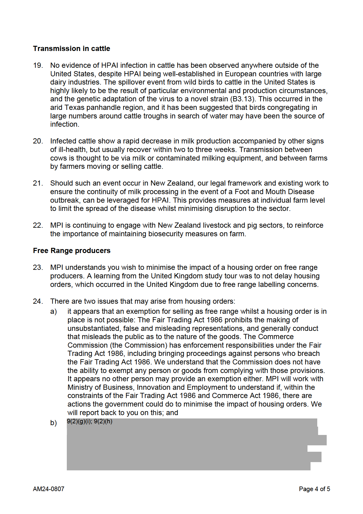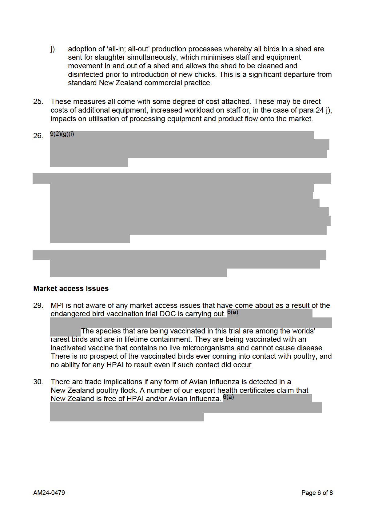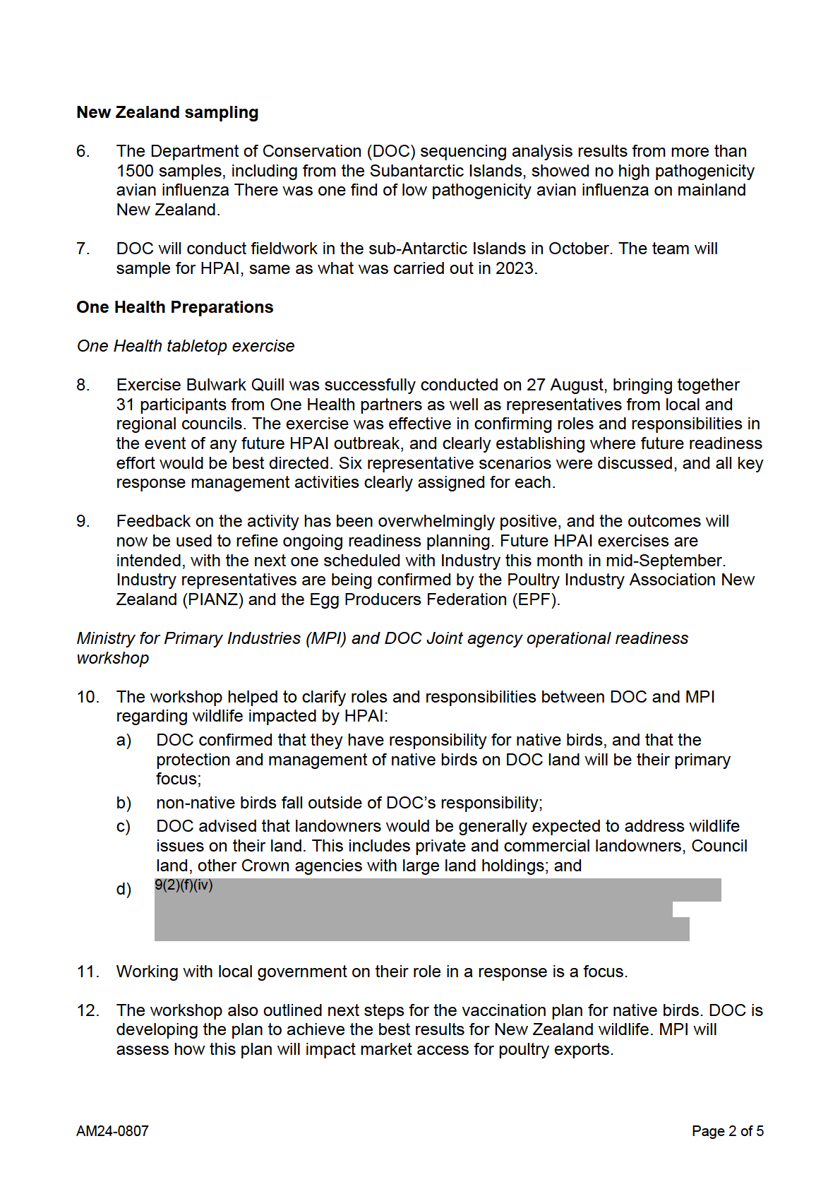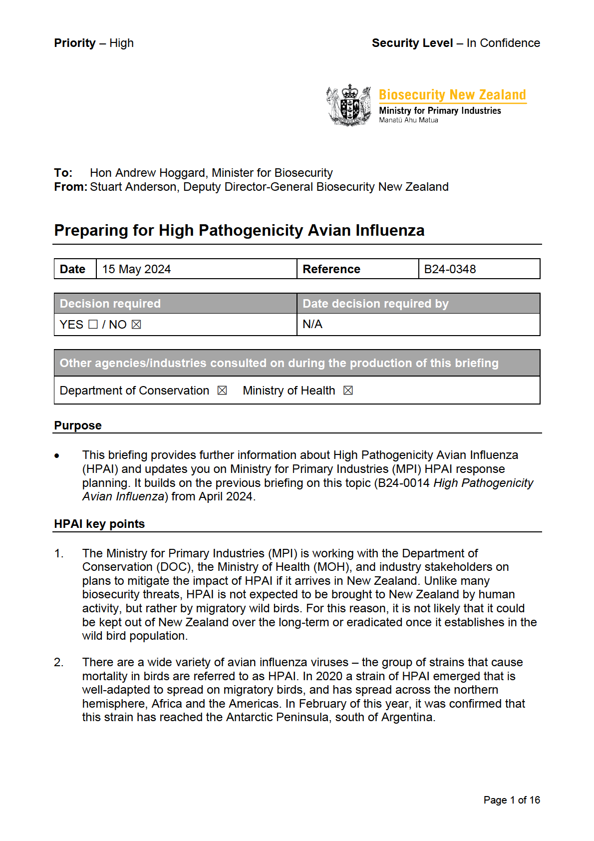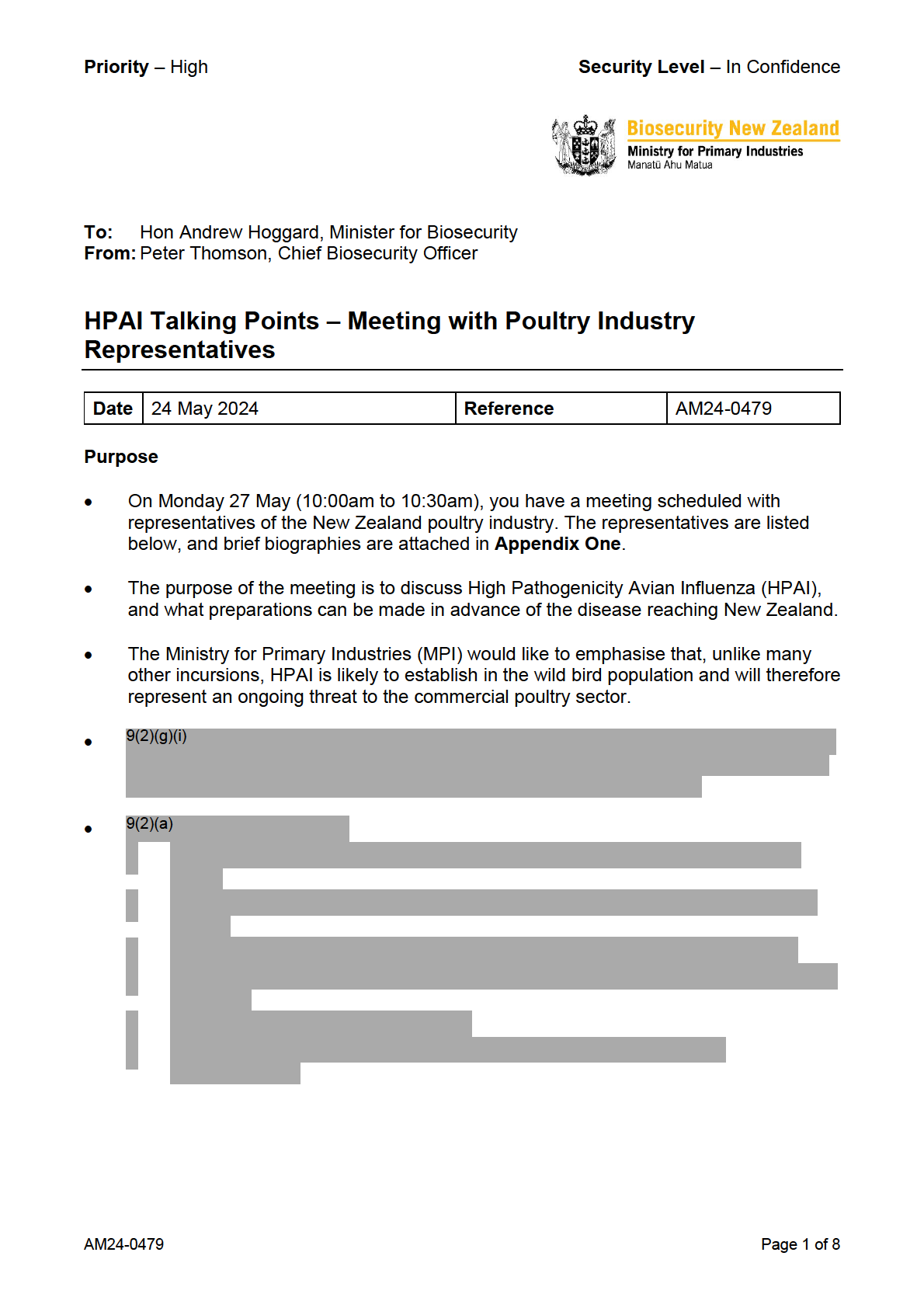 New Zealand to protect our unique native species, mitigate the impact on the poultry