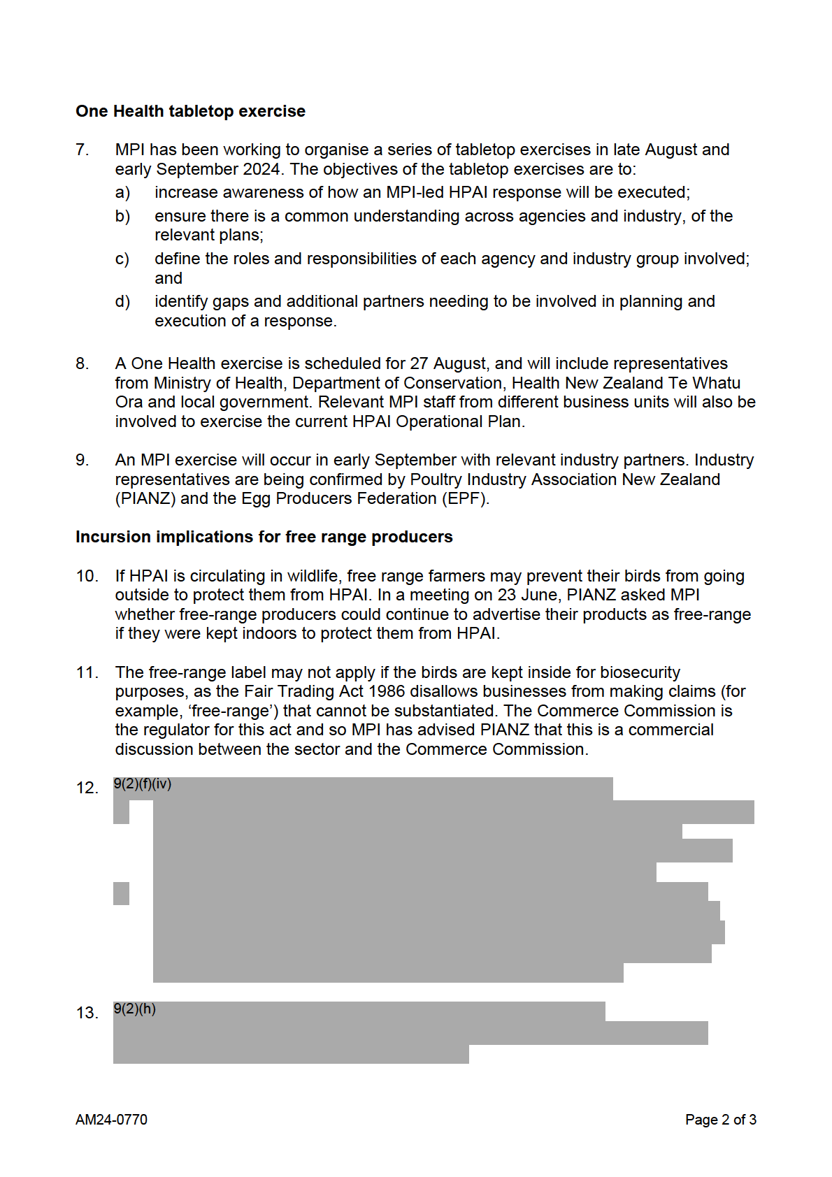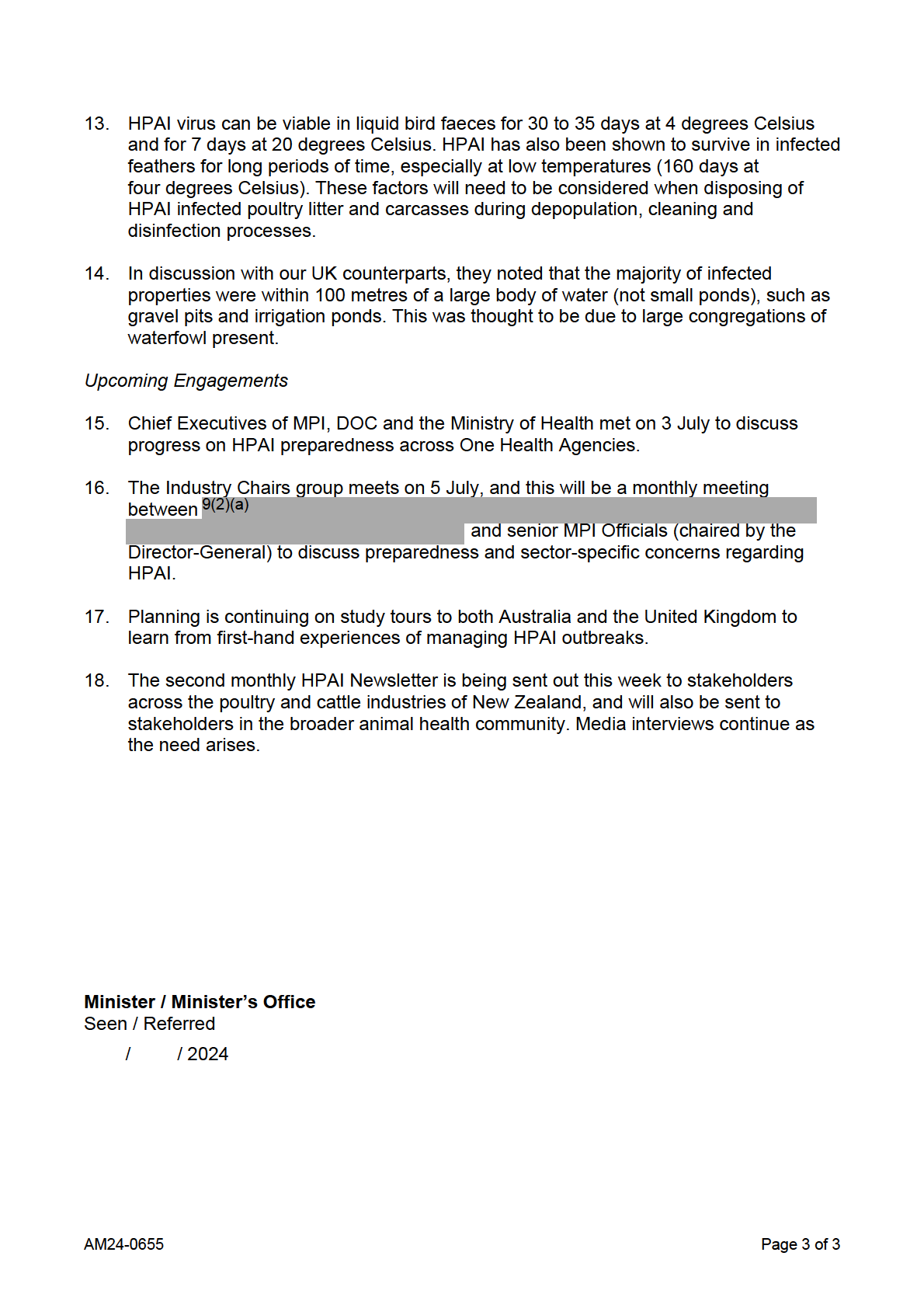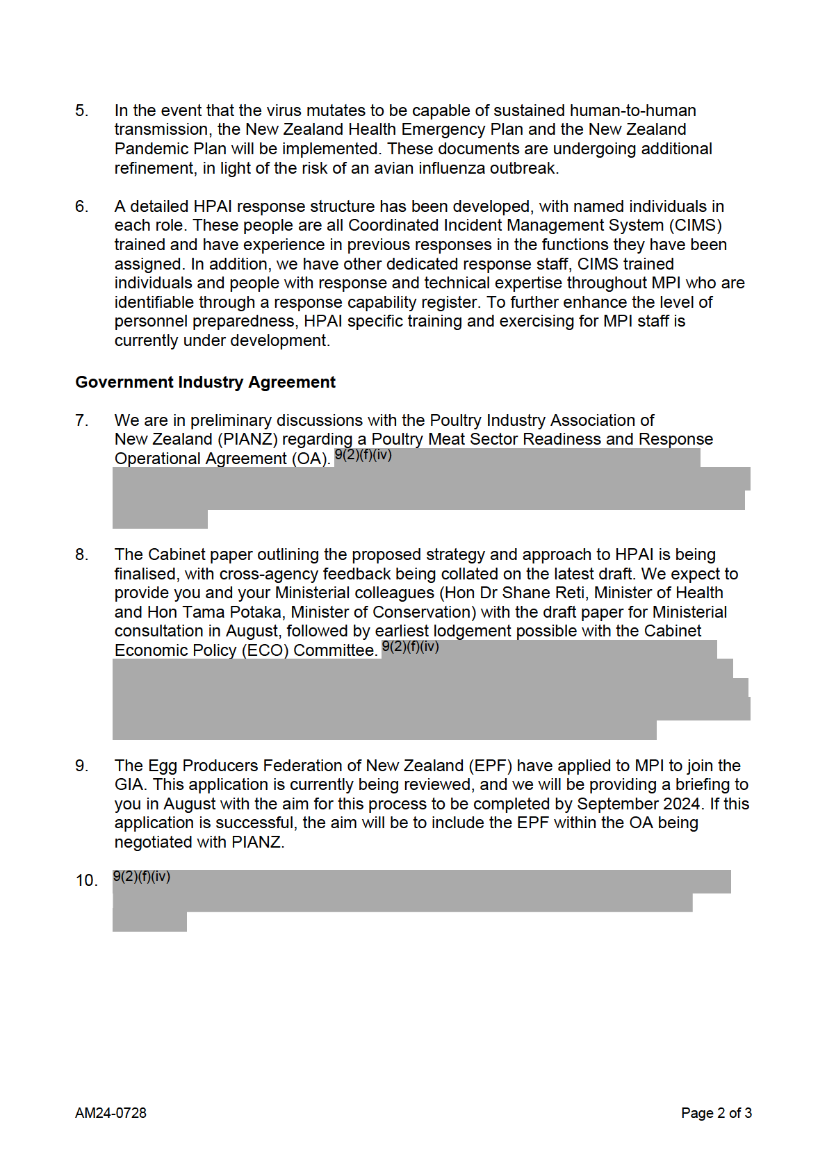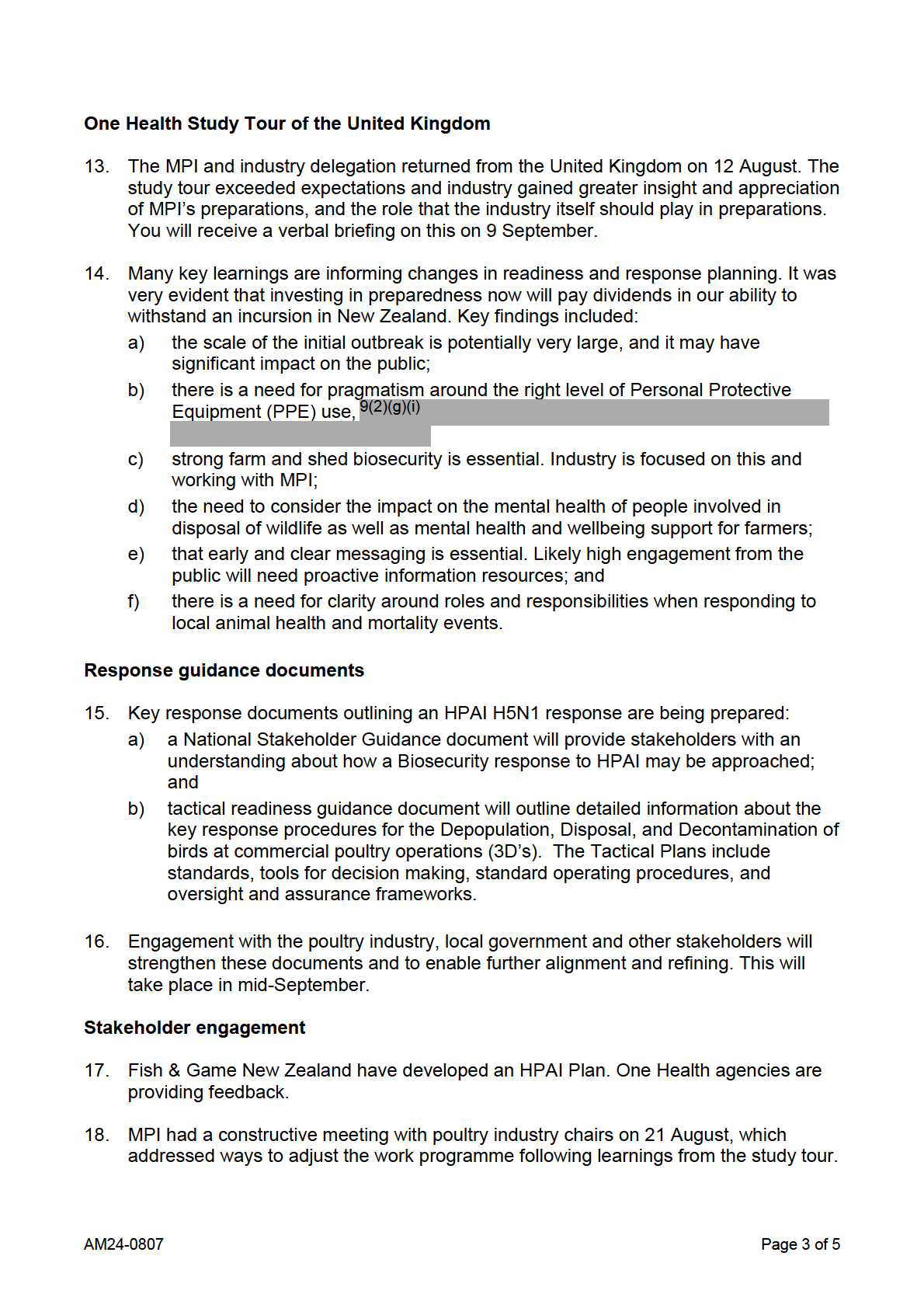 14. MPI is drafting a Cabinet paper for your consideration, setting out some decisions that