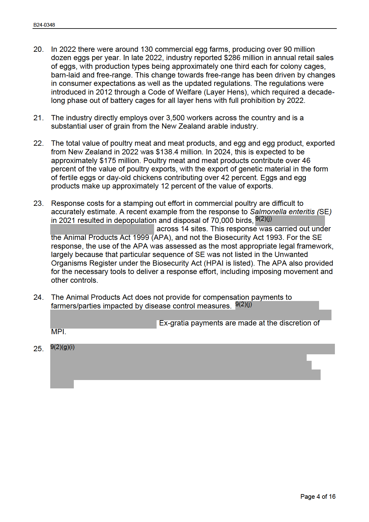 impacts on the domestic supply of poultry meat and eggs. MPI’s response will support
