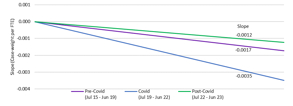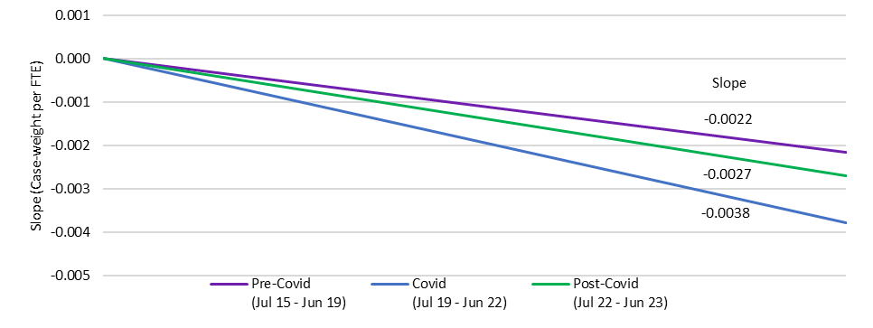 Figure 22: Slope of Case-weights per FTE, Nationally, Three Periods over July 2015 – June 2023