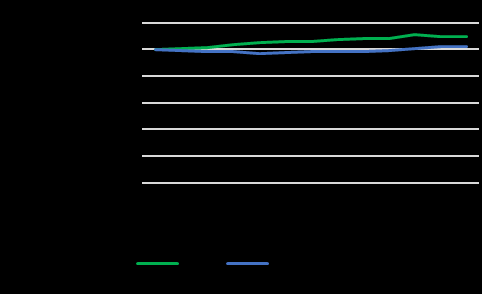 The slope of trend for Figure 22: Slope of Case-weights per FTE, Nationally
