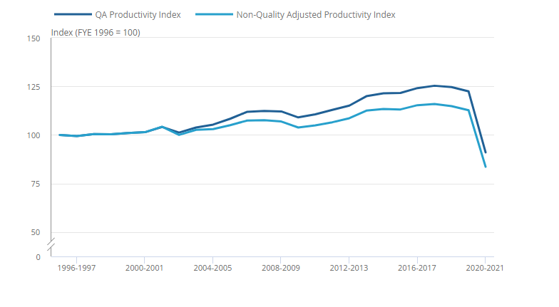 2021/22. However, there has been a longer-term decrease in productivity which has been observed