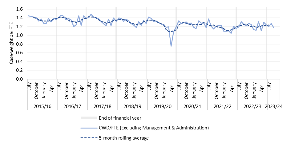 Figure 20: Case-weights per FTE, Nationally, July 2015 – September 2023