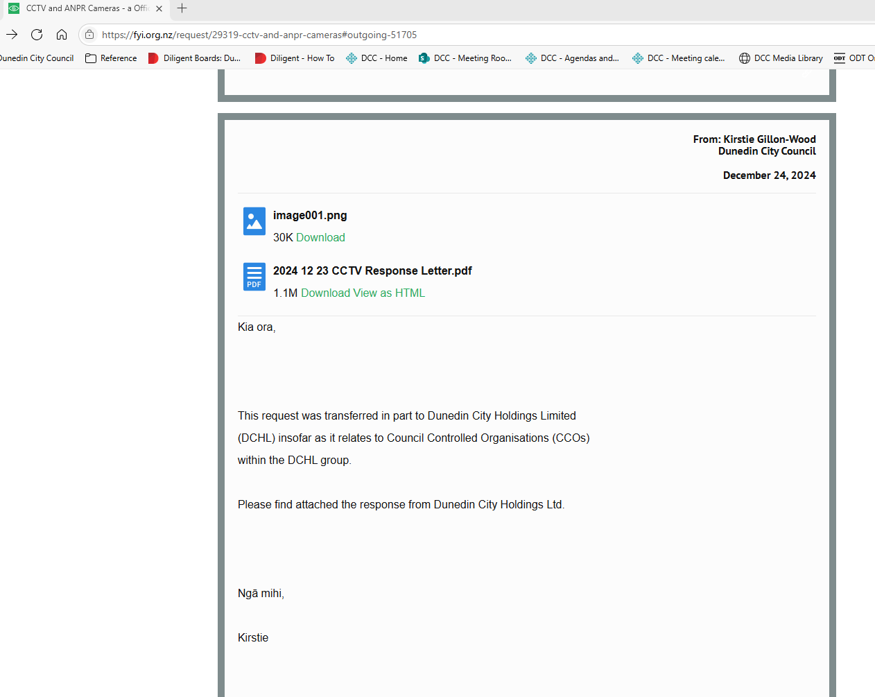 I write about your LGOIMA request received 27 November 2024 regarding CCTV