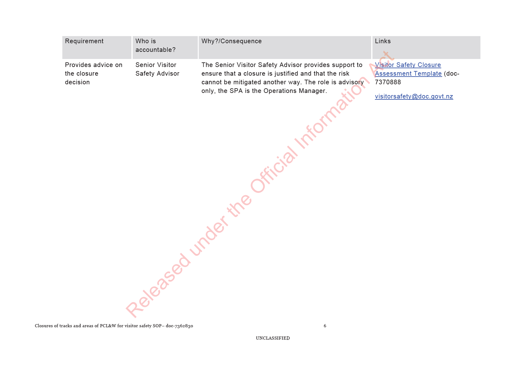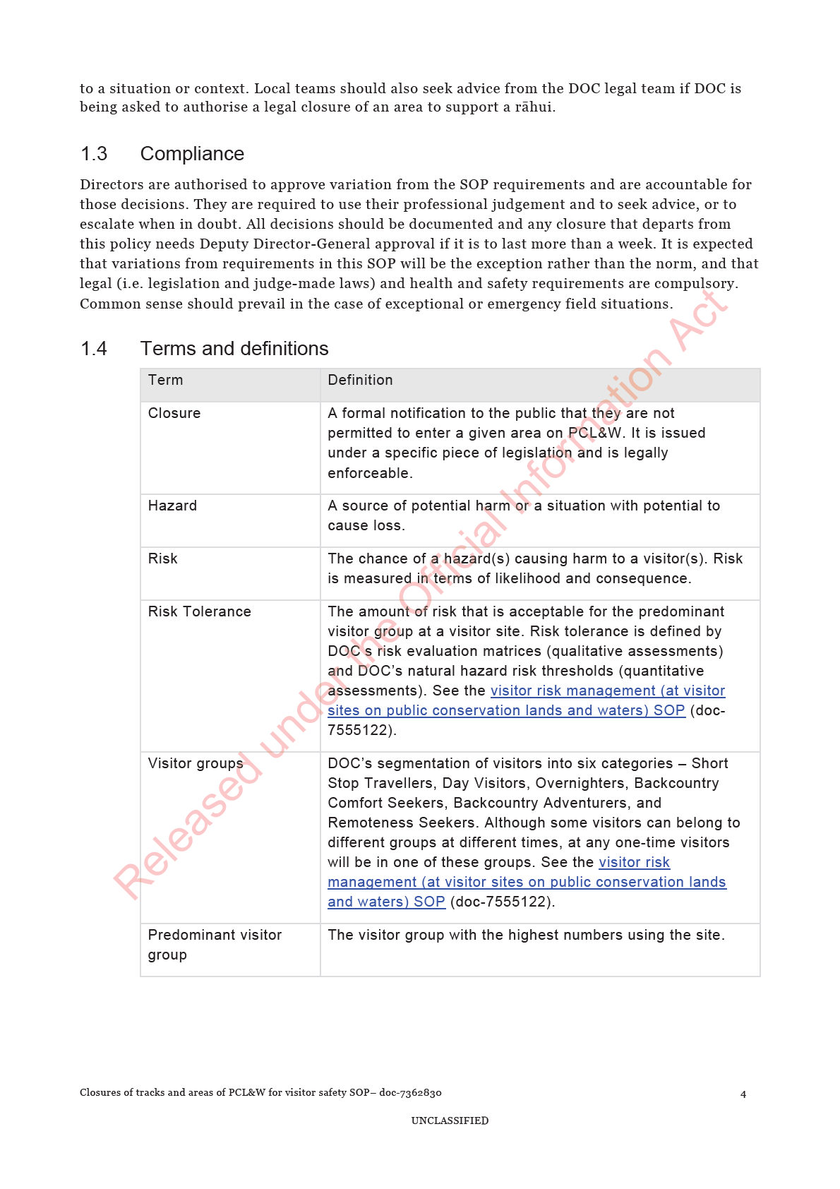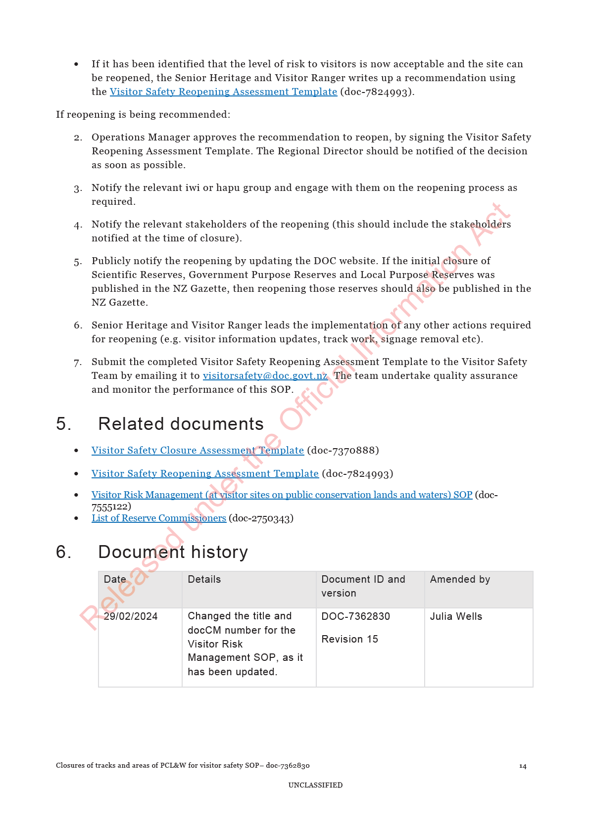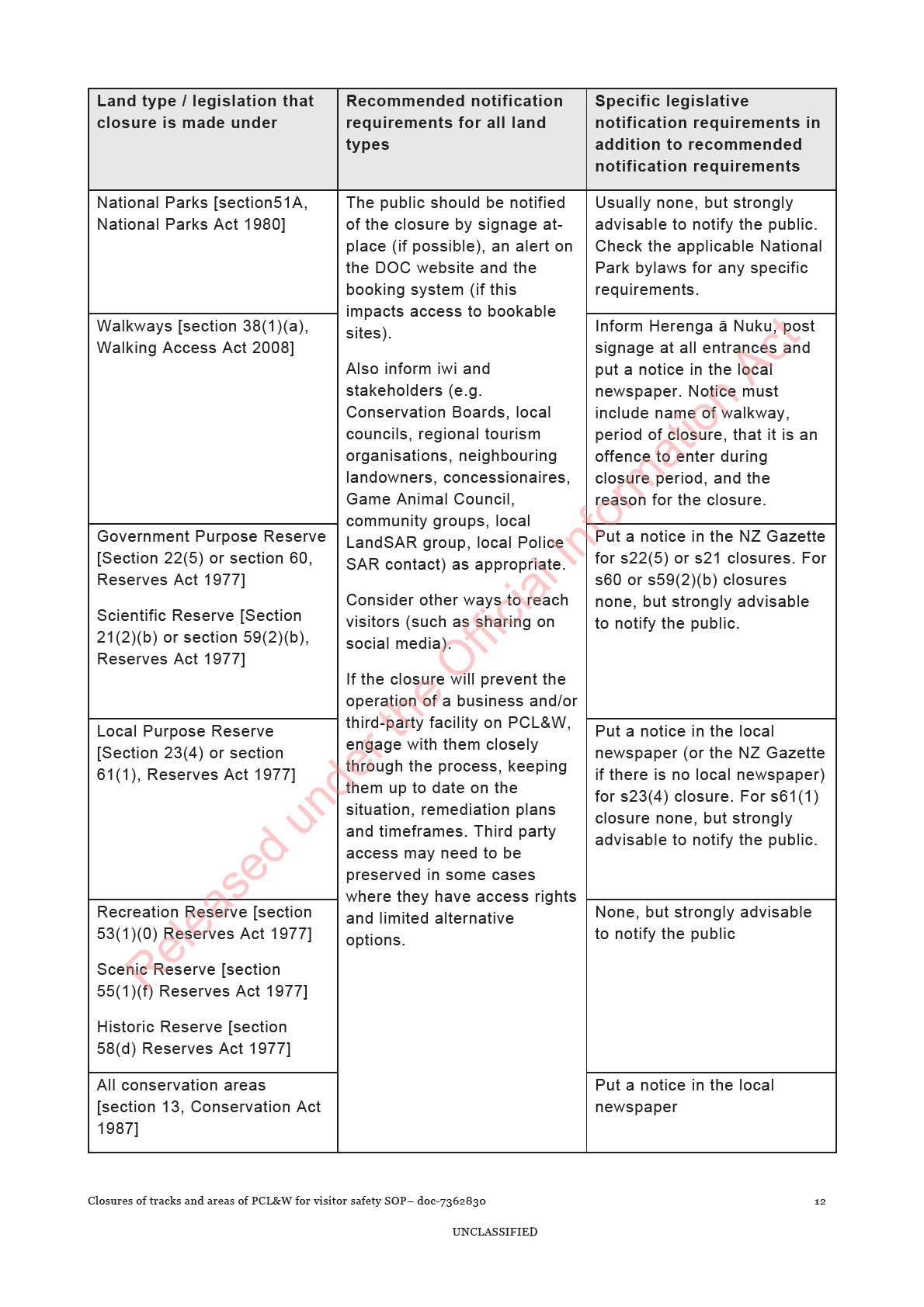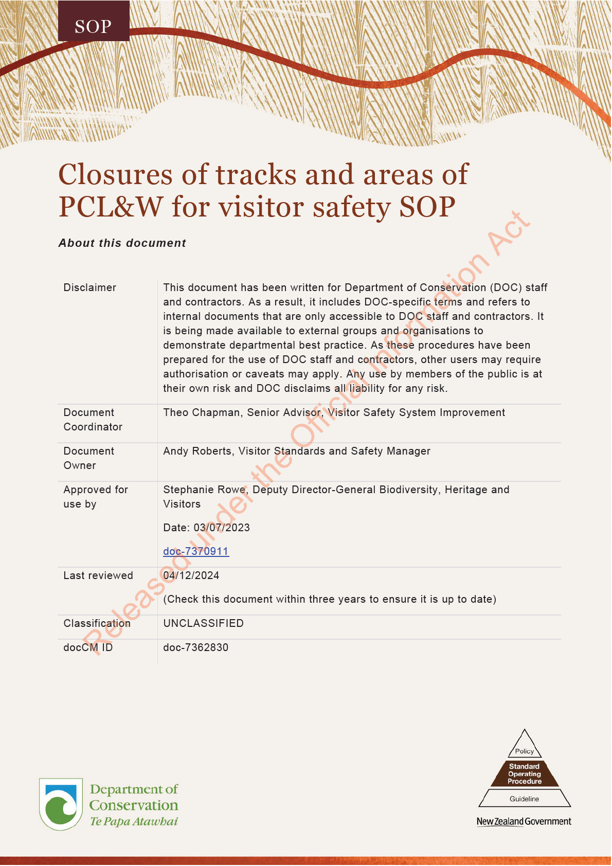 closures for visitor safety purposes. The policies recognise DOC may “notify the closure of a
