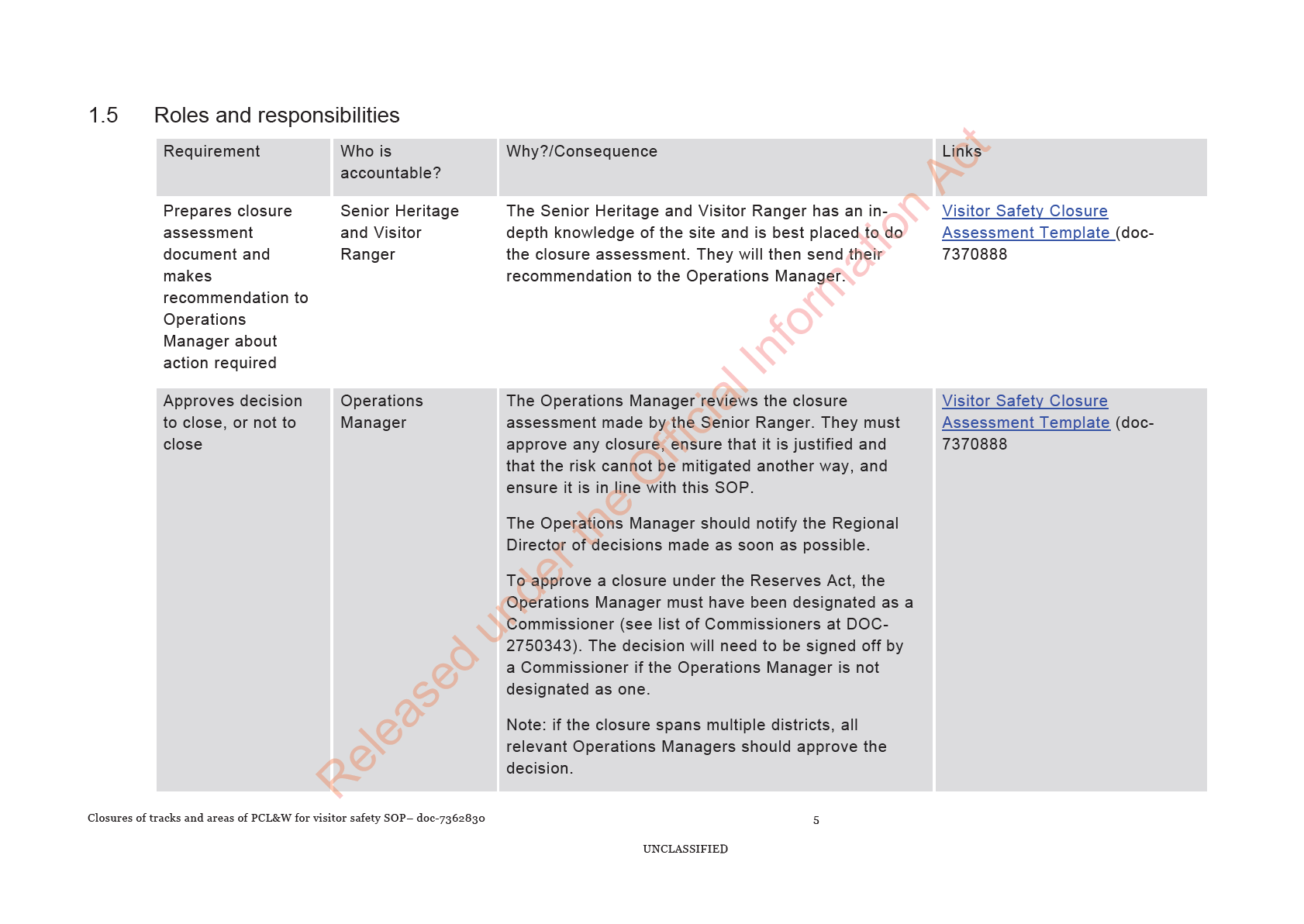 Closures of tracks and areas of PCL&W for visitor safety SOP– doc-7362830