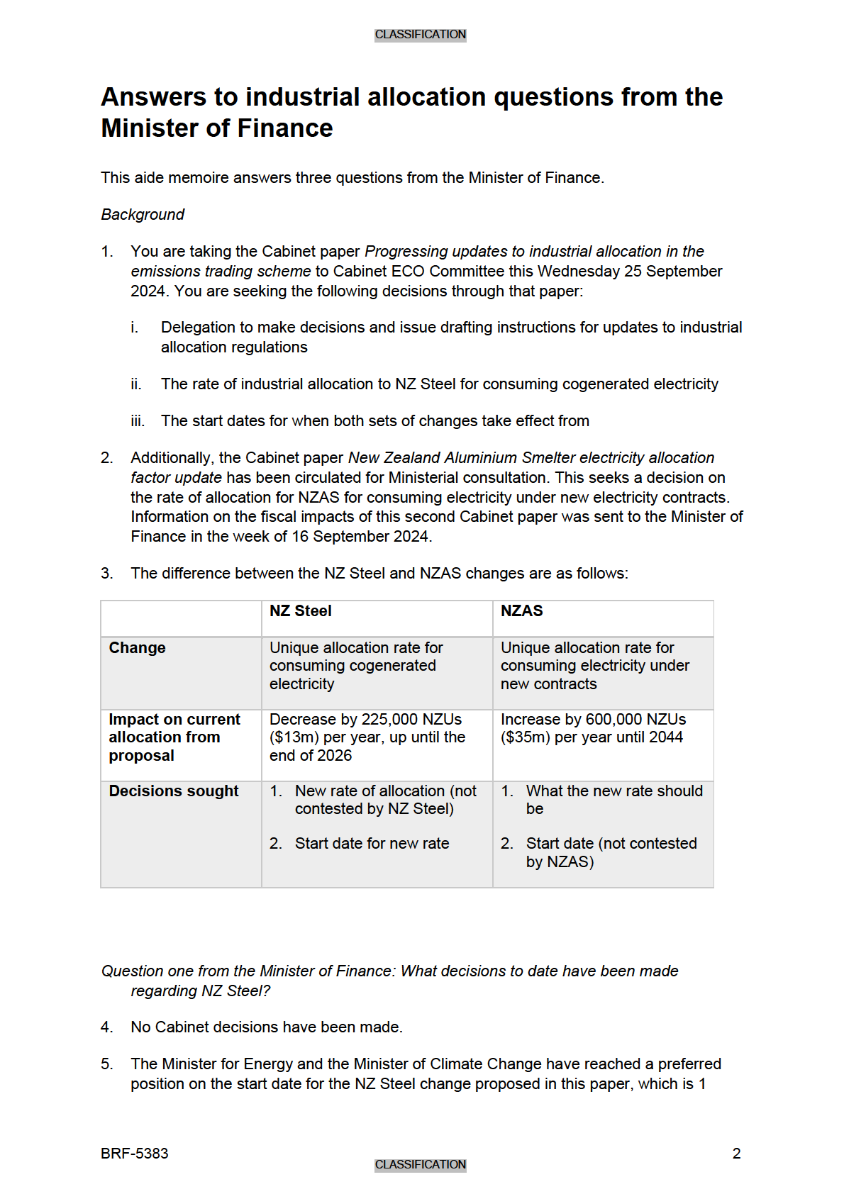 We understand that the Minister intended to take an oral item to Cabinet on 8 July 2024,