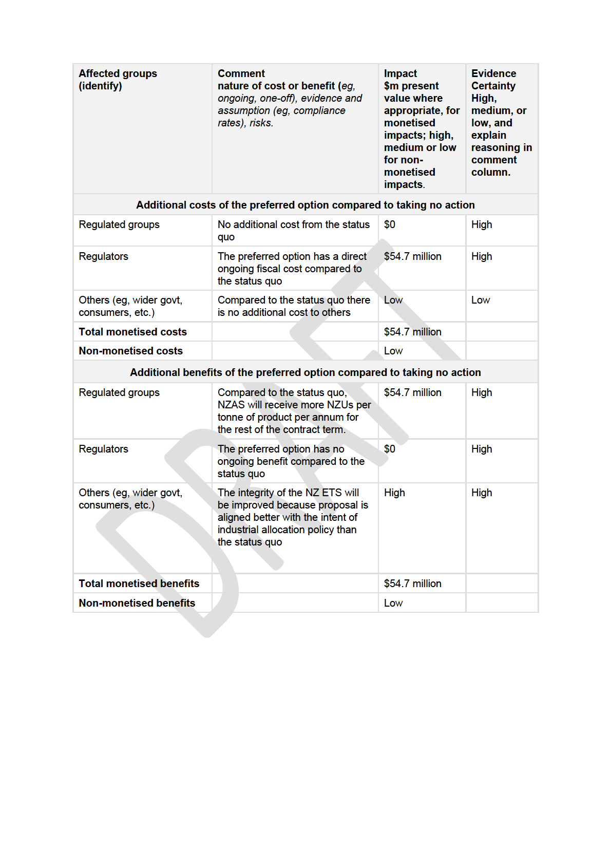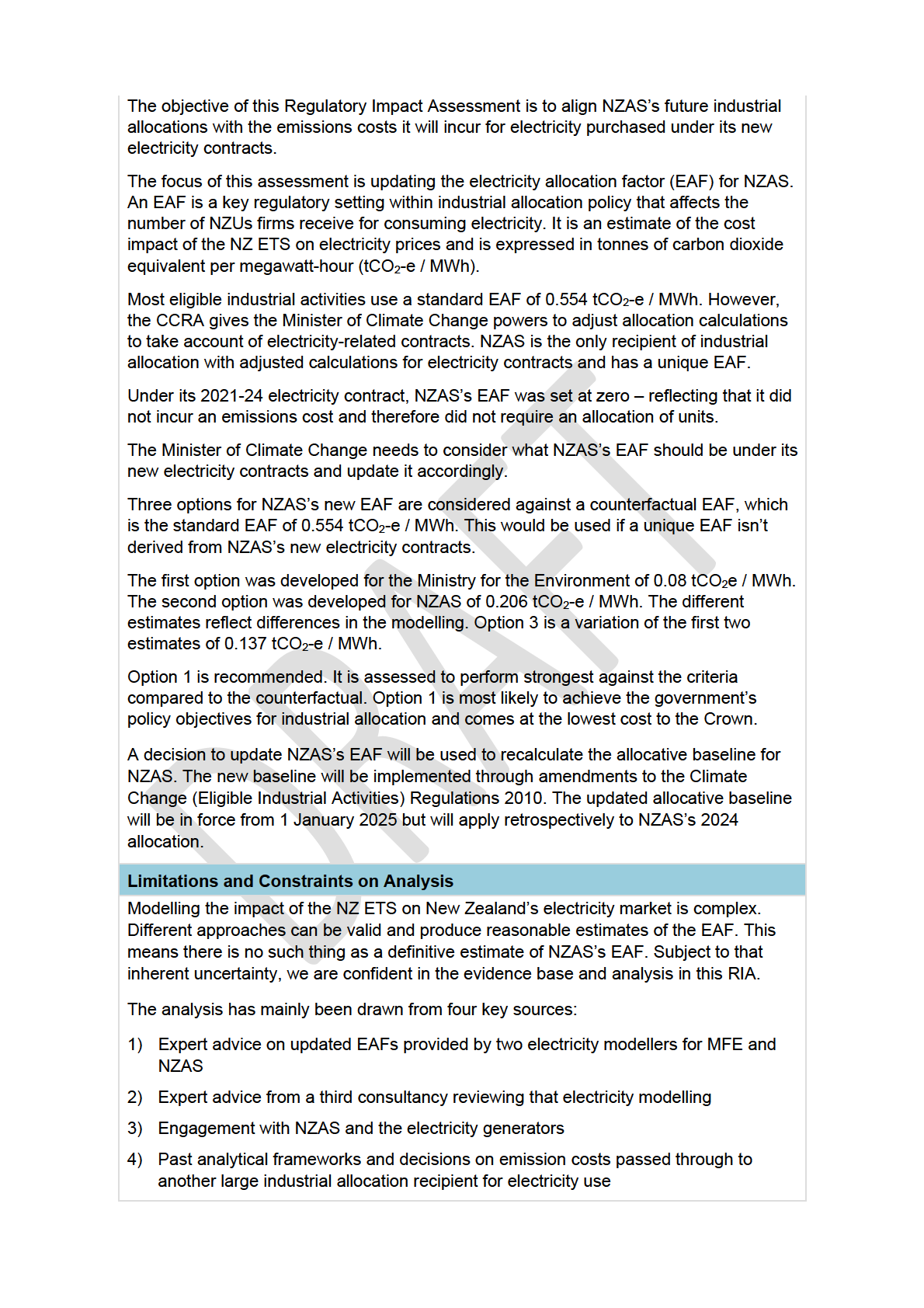 assumptions from the NZAS-procured modelling. The RIA notes that those key