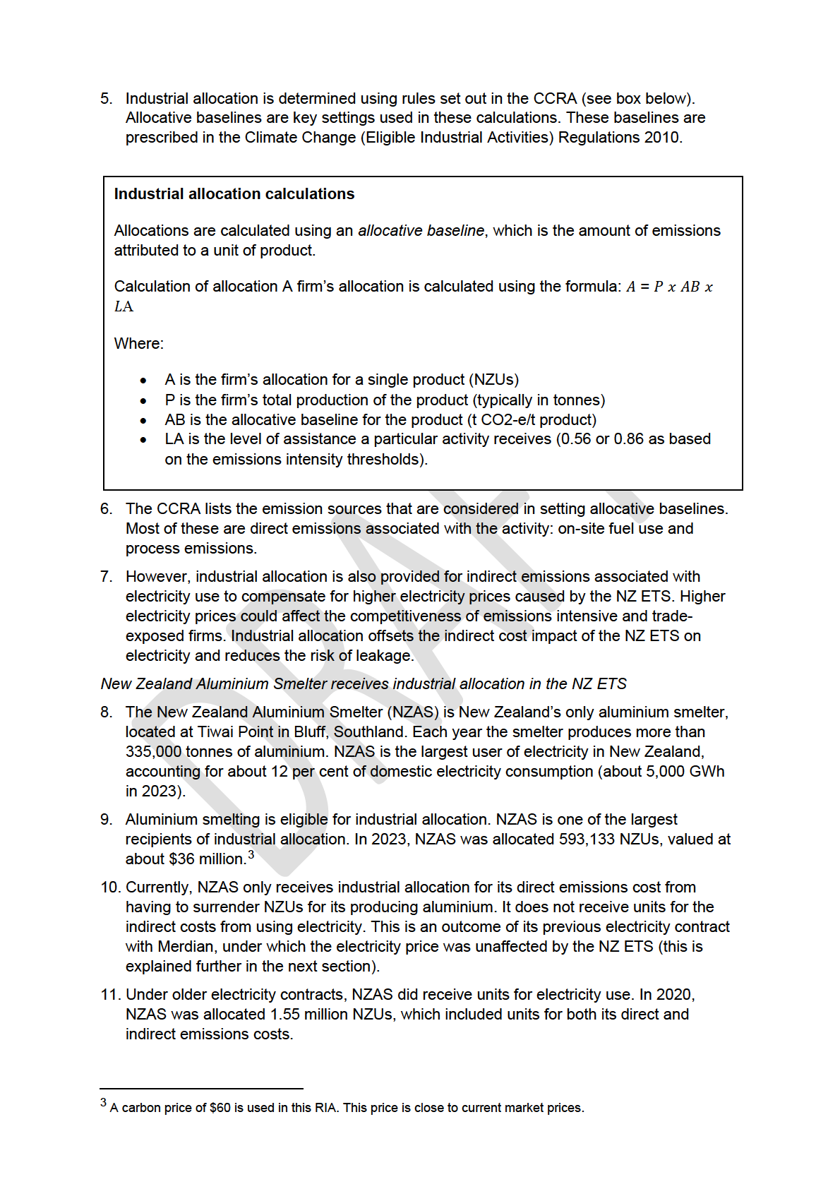 the Emissions Trading Scheme on electricity prices. They inform the free allocations of