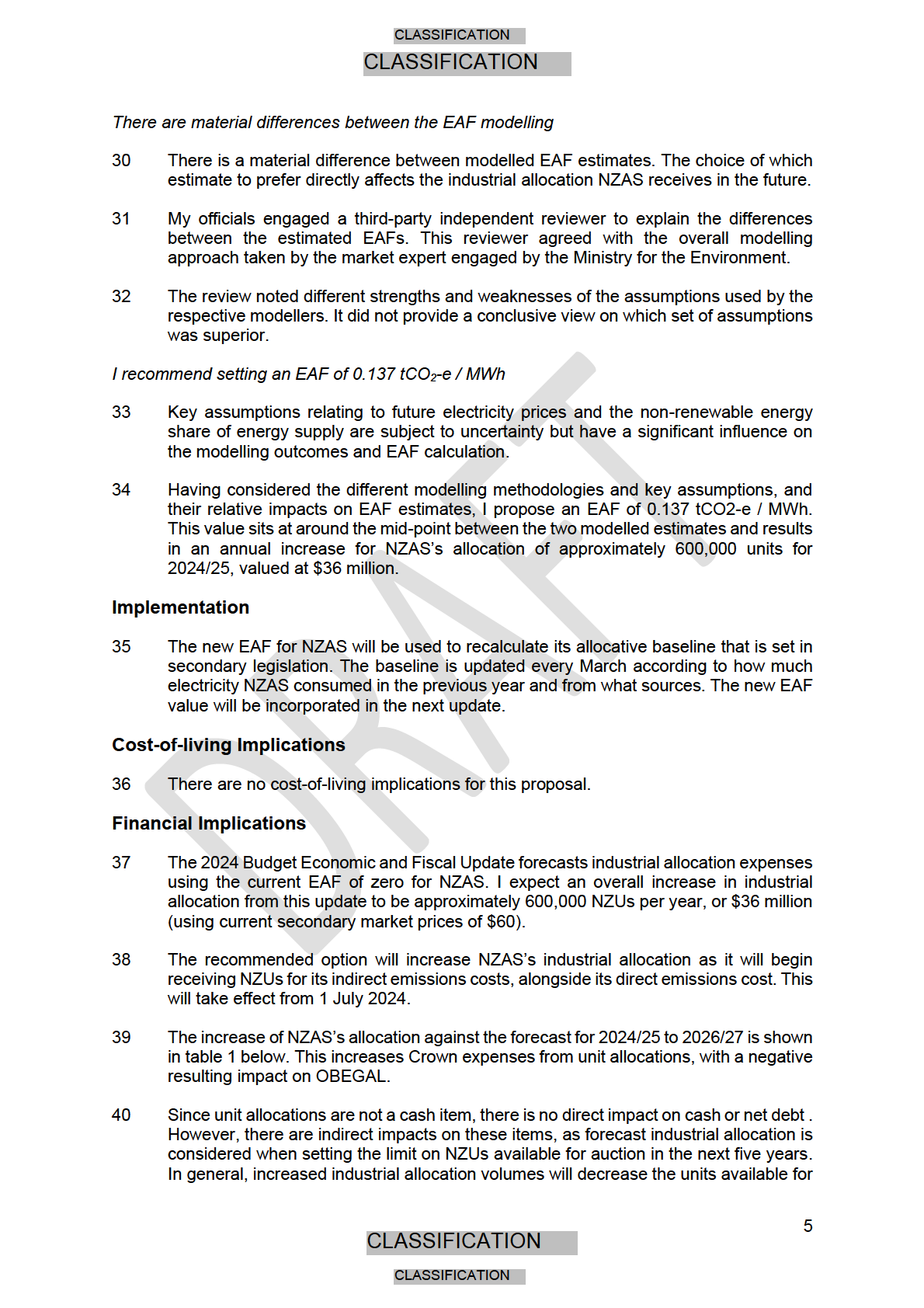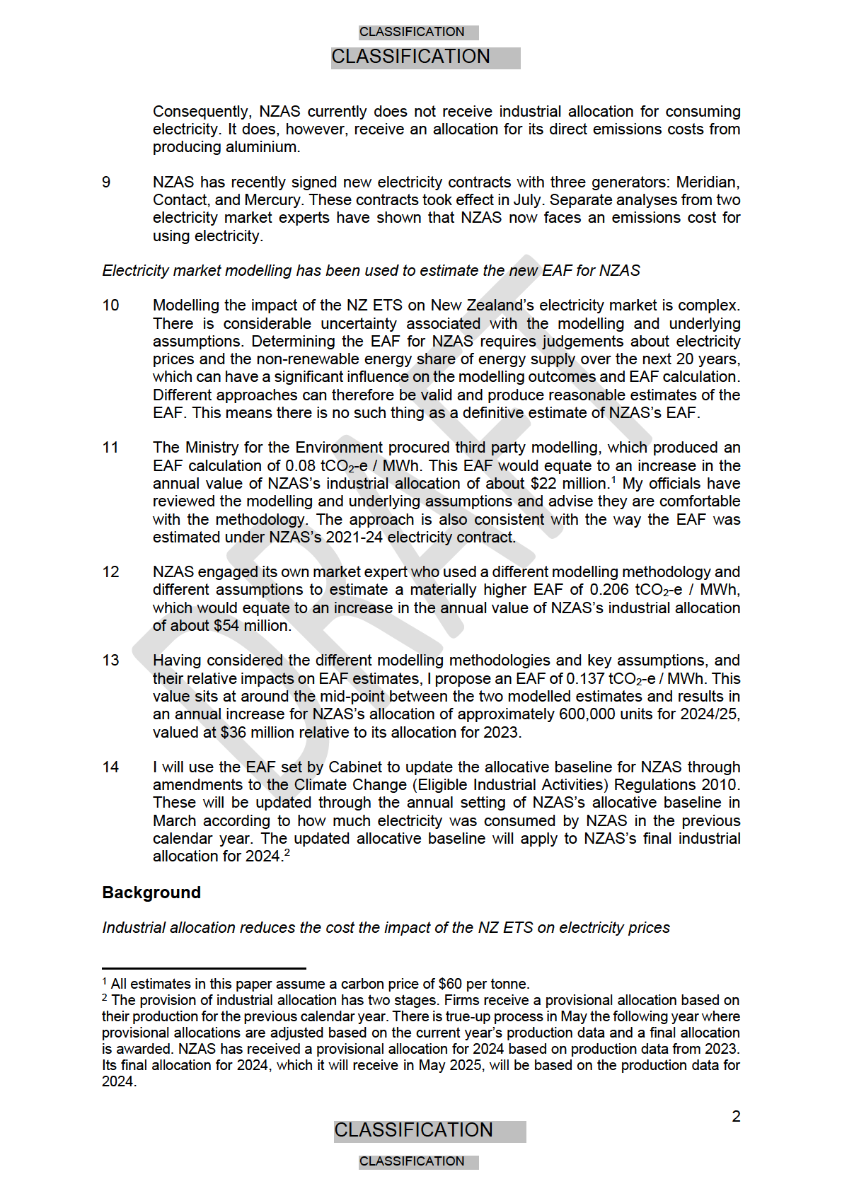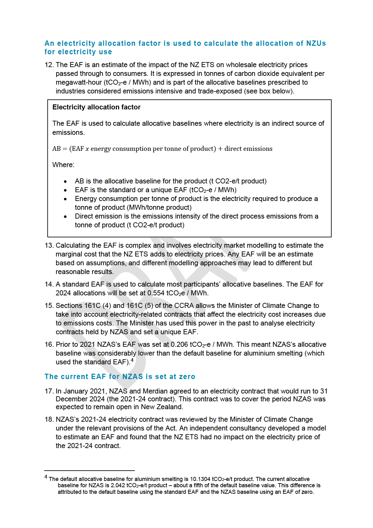 2. The draft Cabinet paper seeks agreement to set a new electricity allocation factor (EAF)