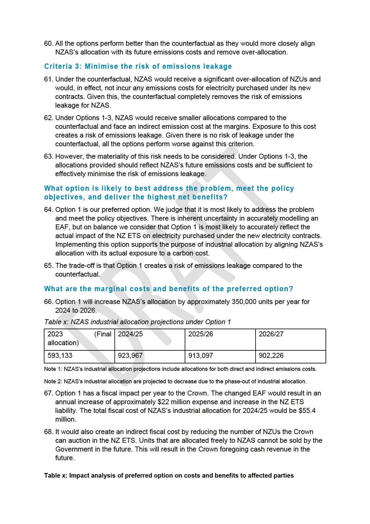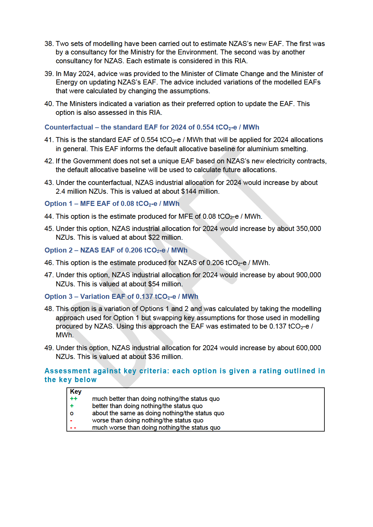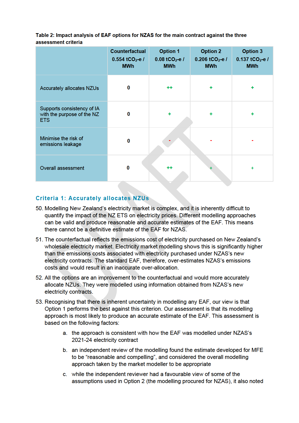 EAF of 0.08 tCO2-e / MWH as officials’ preferred option. That option was also the one