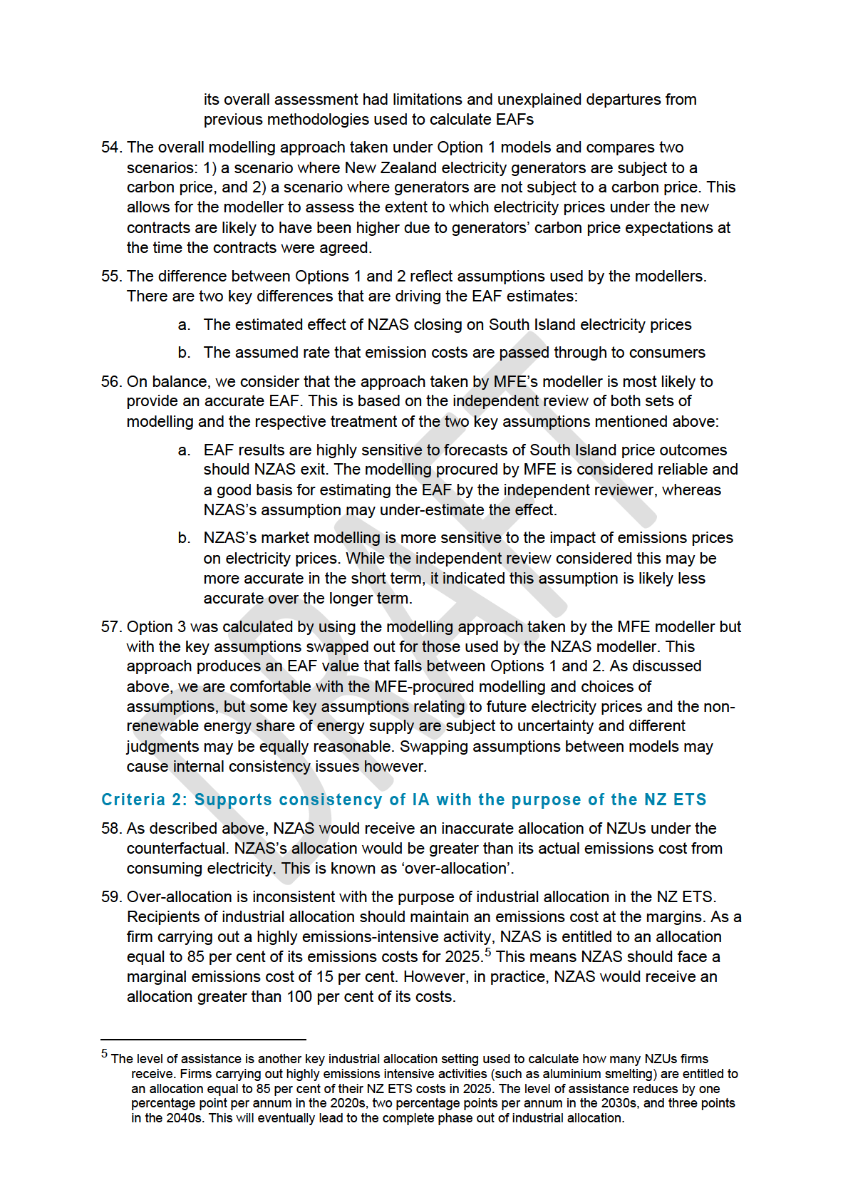Determining the EAF for NZAS requires judgements about electricity prices and the