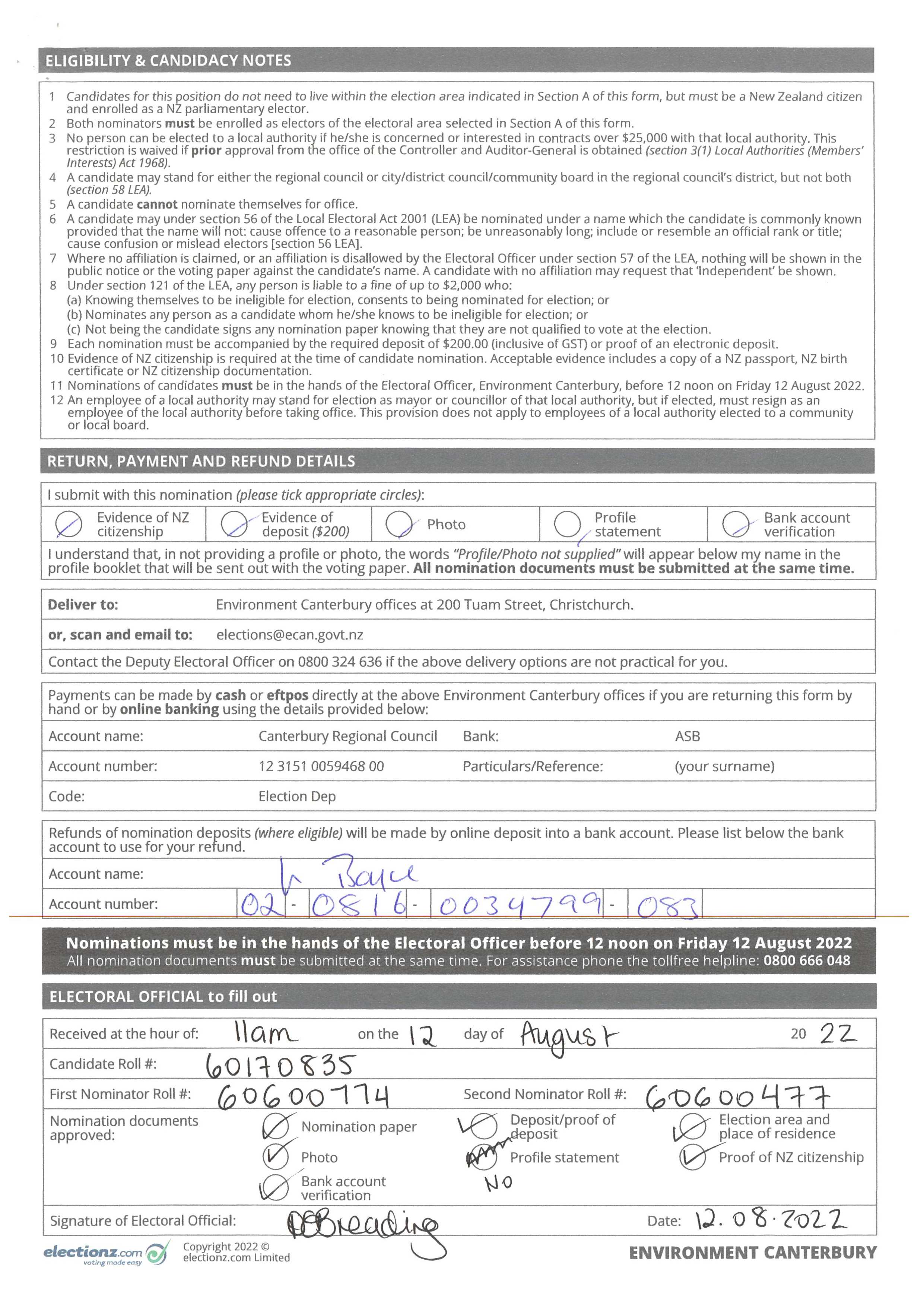 Please find the updated documents for Lindon Boyce – Chch Central.
