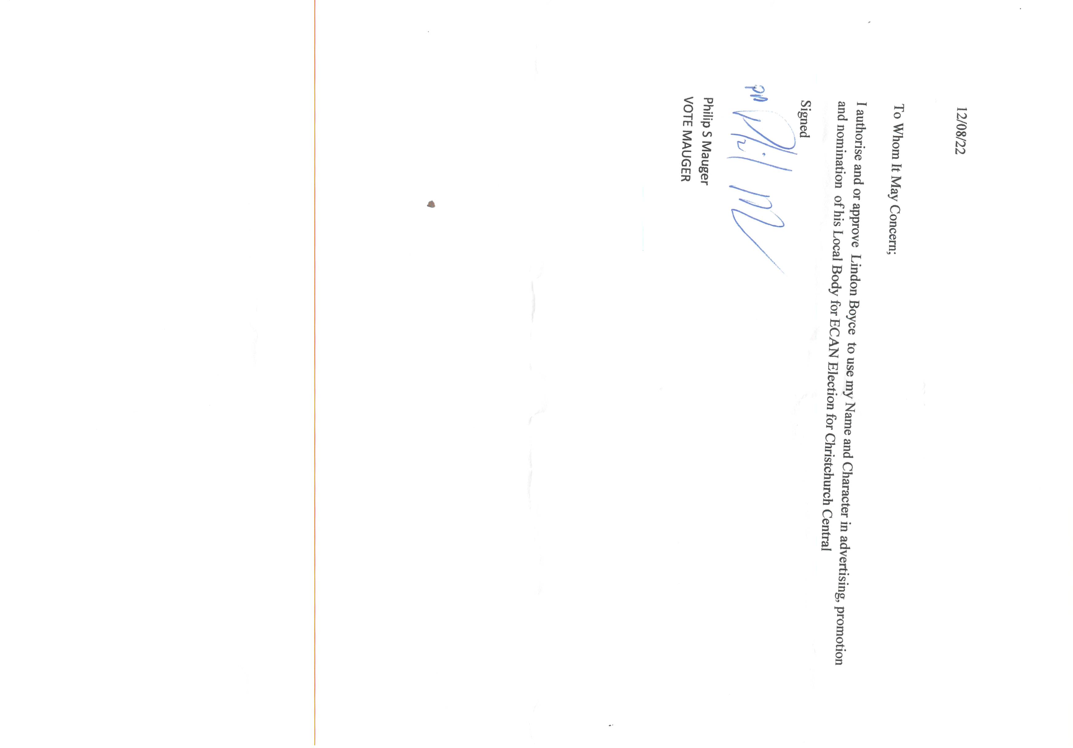 RE Phil Mauger not endorsing Lindon Boyce.msg