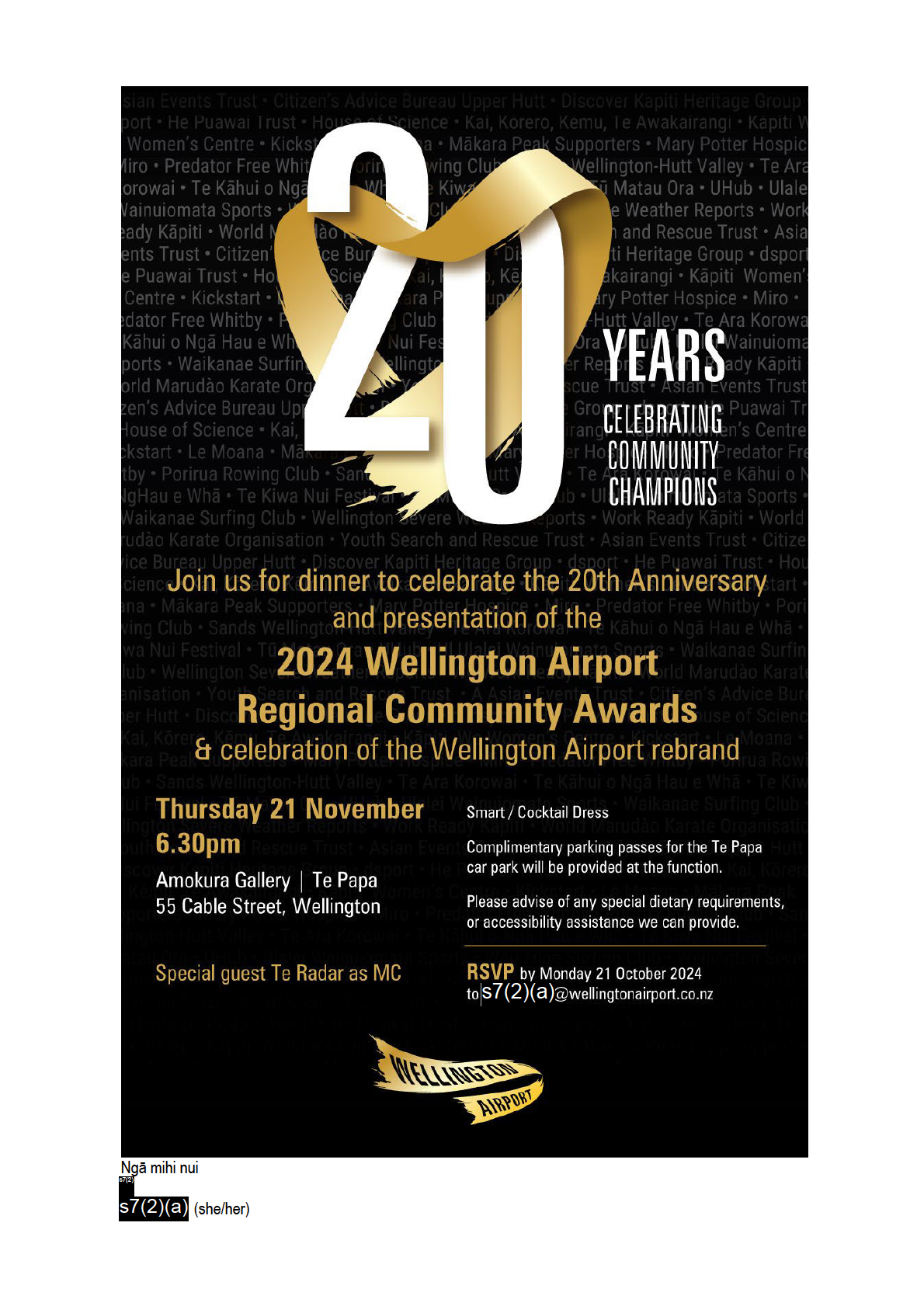 with Wellington Airport. A partnership that was first formed almost 15 years ago. I thank