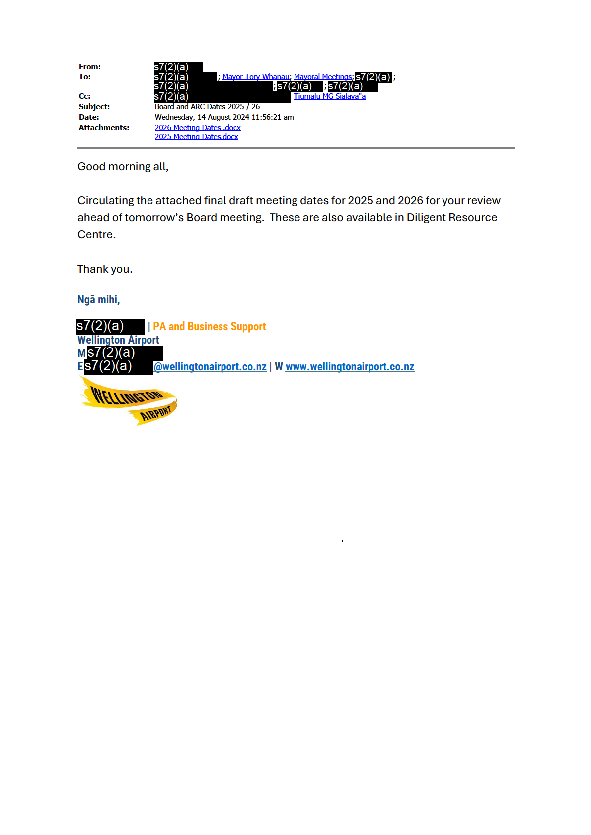 Subject: RE: Board Meeting 27 Feb - Wellington Airport