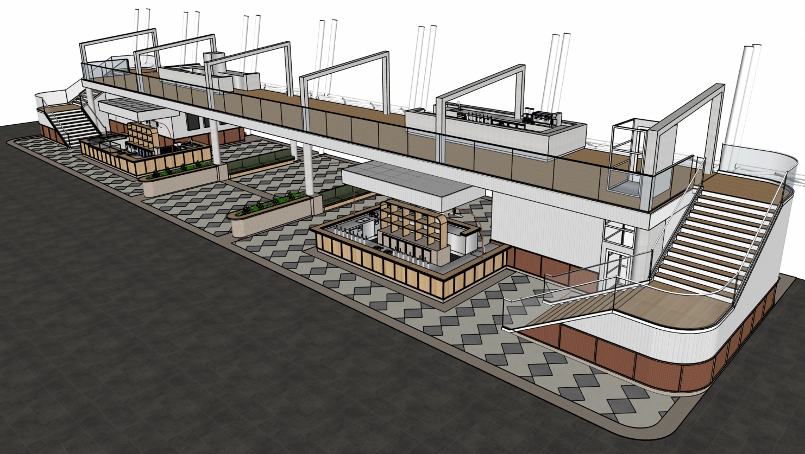 A new two-story bar and café will be built in the centre of the terminal above the current