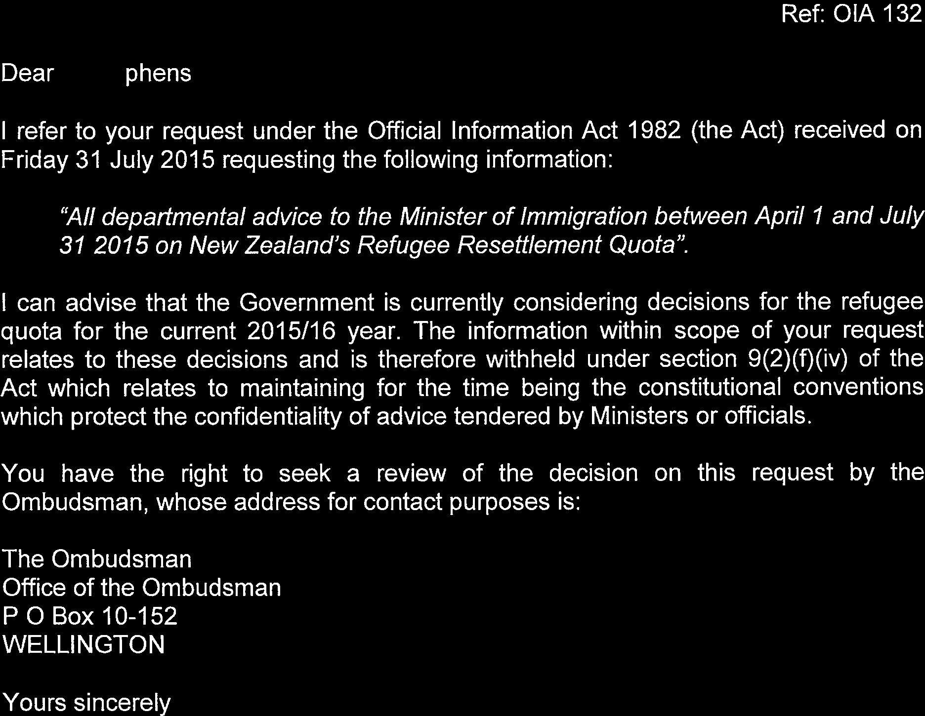 Advice on New Zealand's Refugee Quota - updated request (ii)