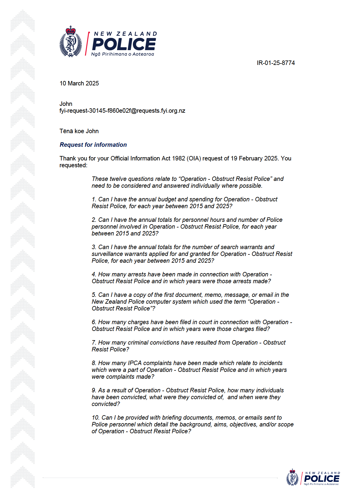 and sent to Police personnel as part of Operation - Obstruct Resist Police?
