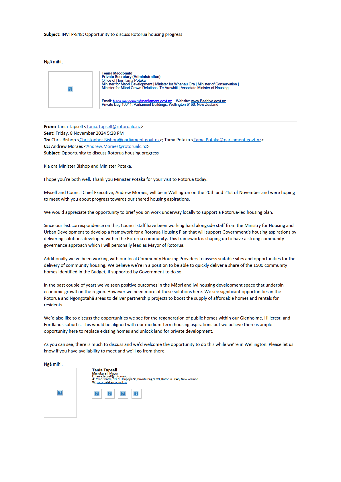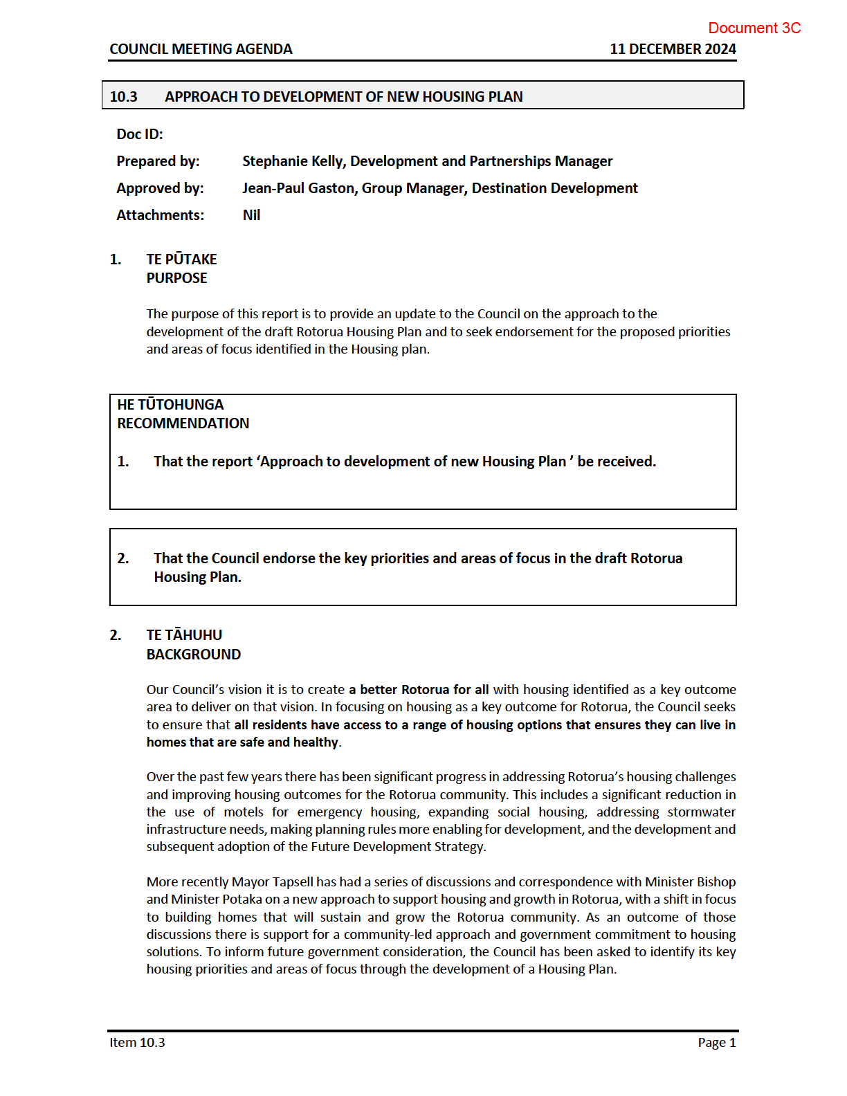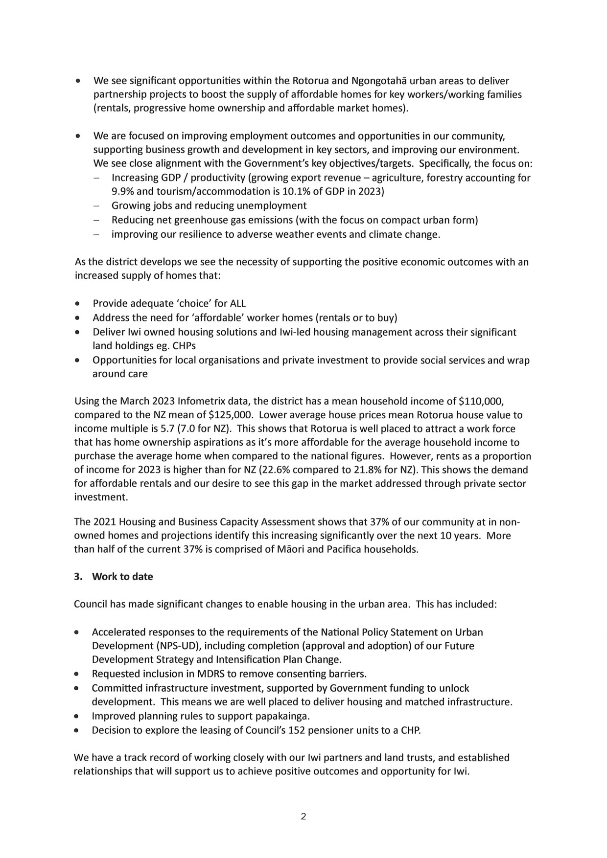 attached regarding progress made on our Rotorua Housing Plan.
