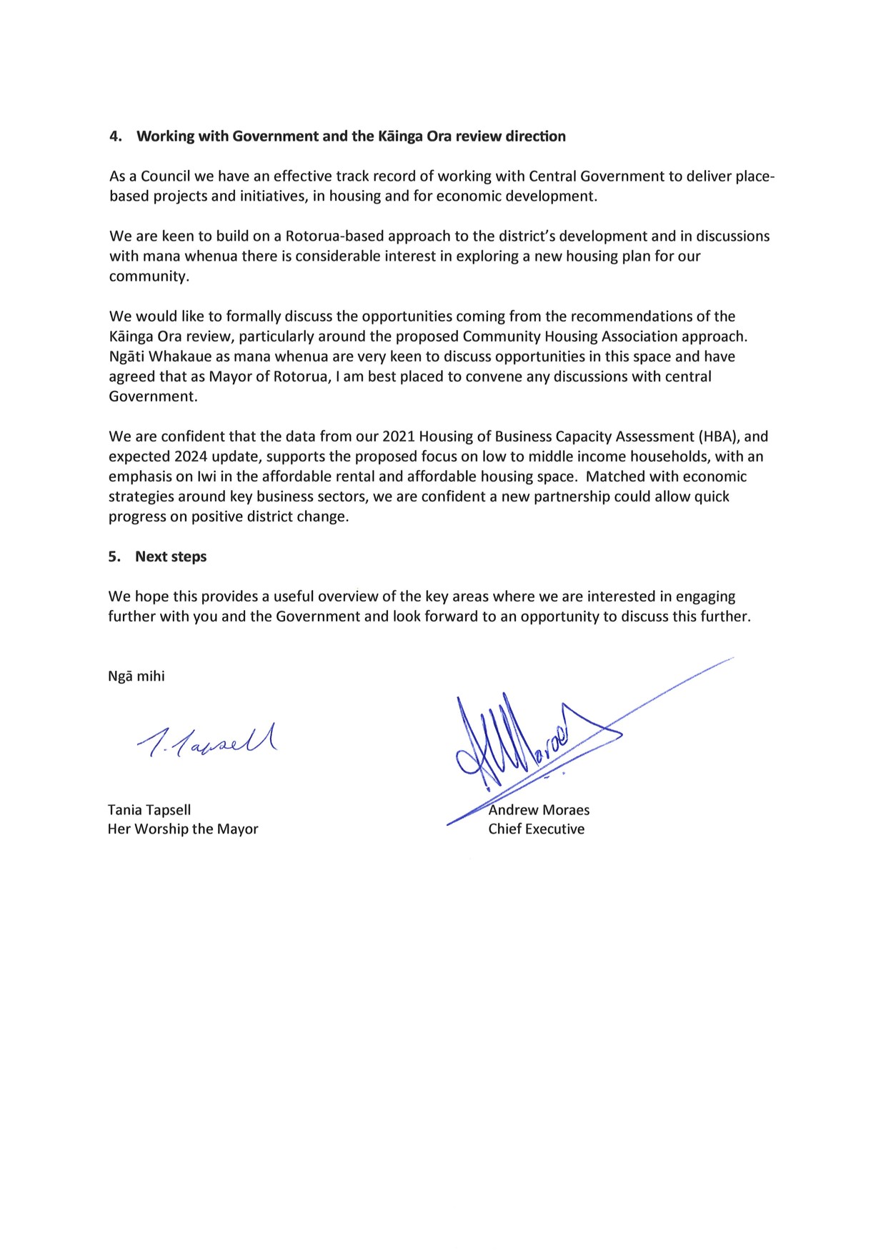 Please find attached a letter from Mayor Tapsell and Chief Executive Andrew Moraes regarding the
