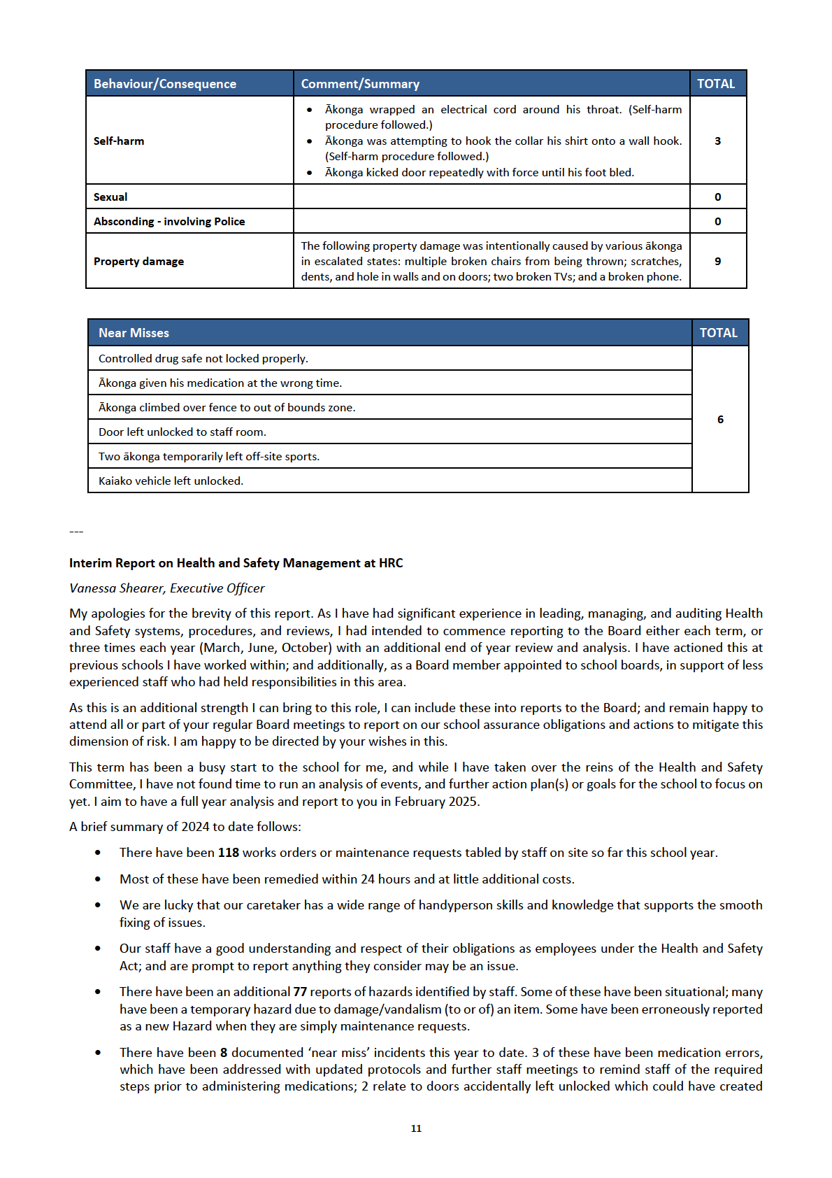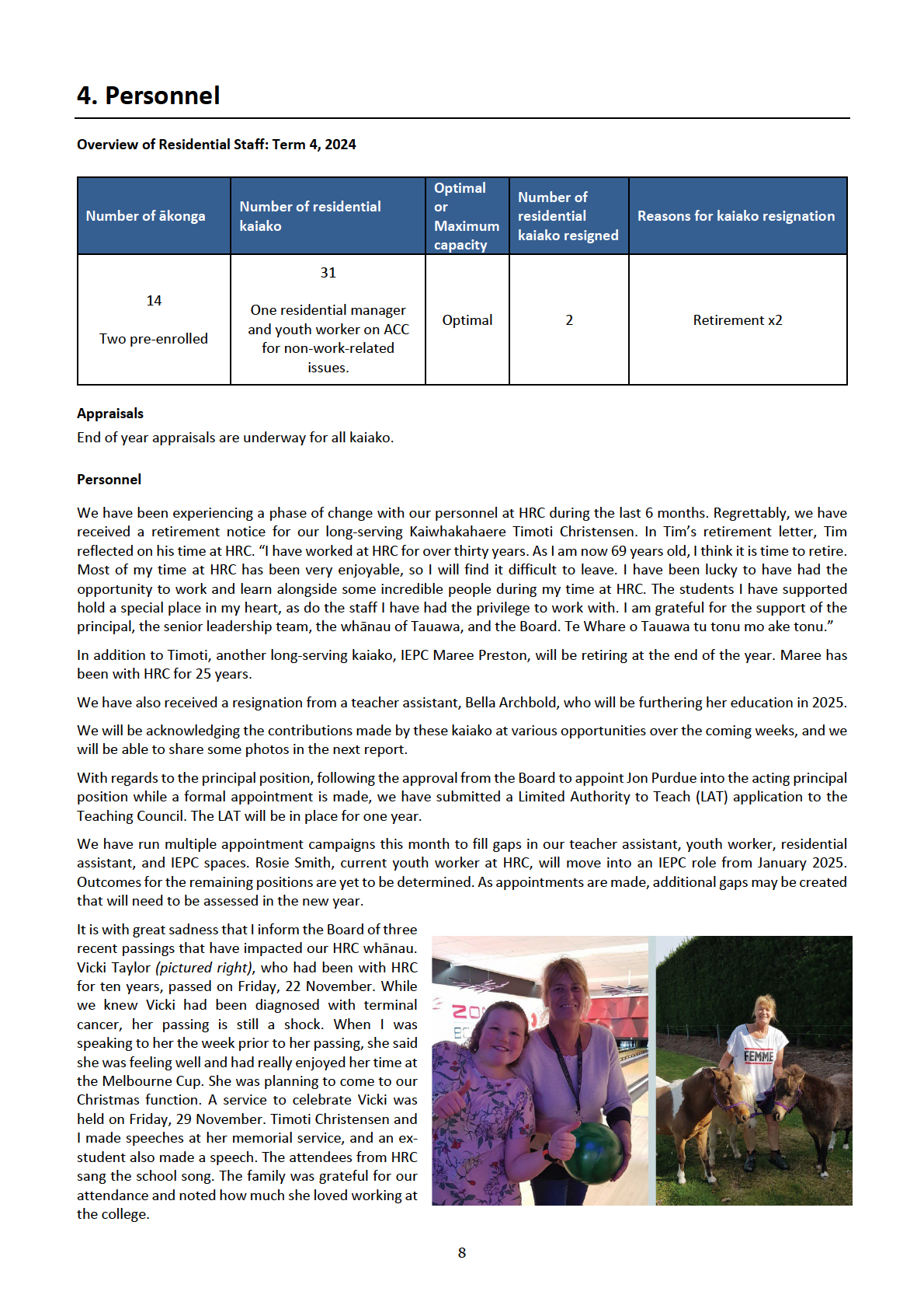 HRC Principal’s Report to the Board of Trustees