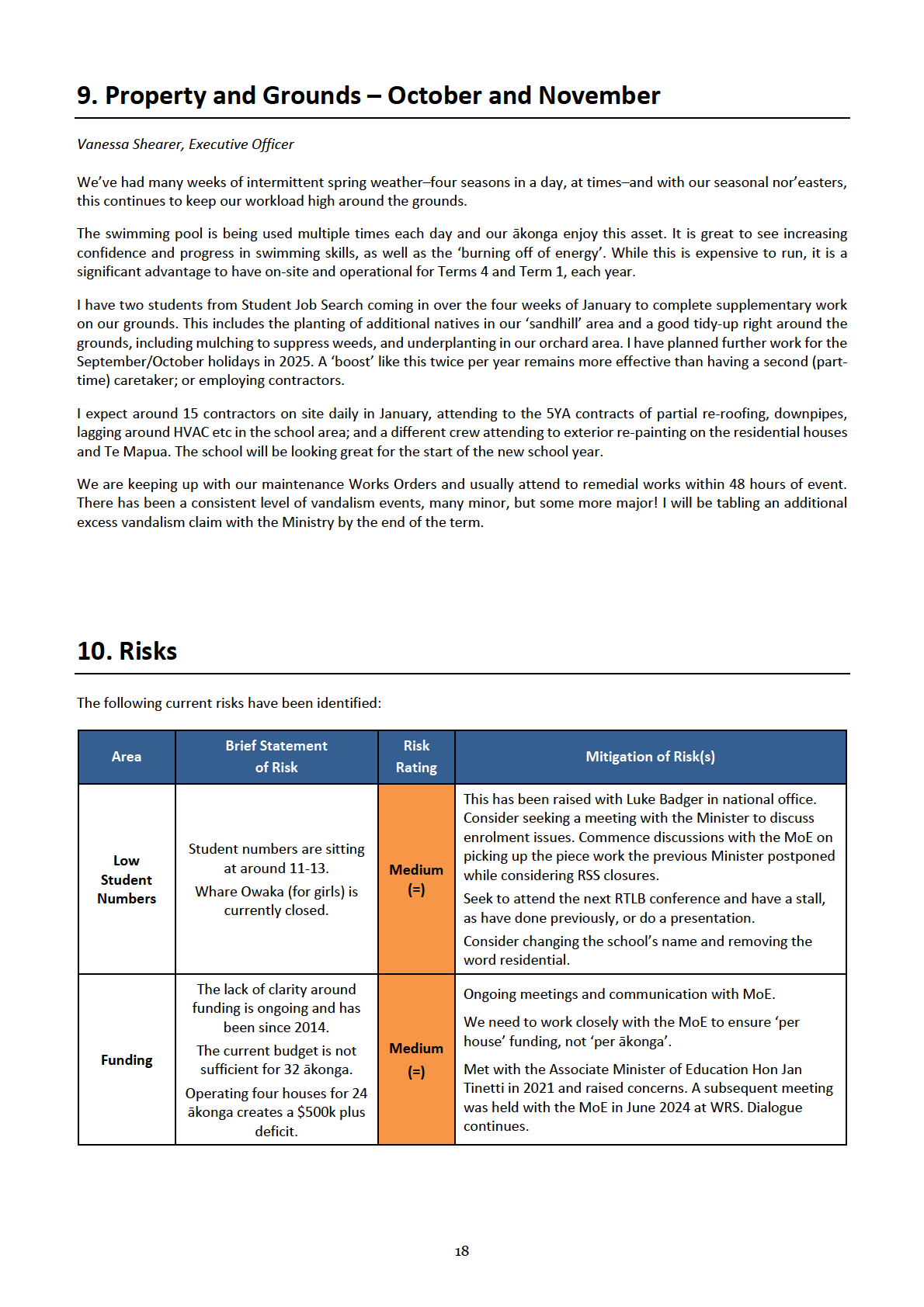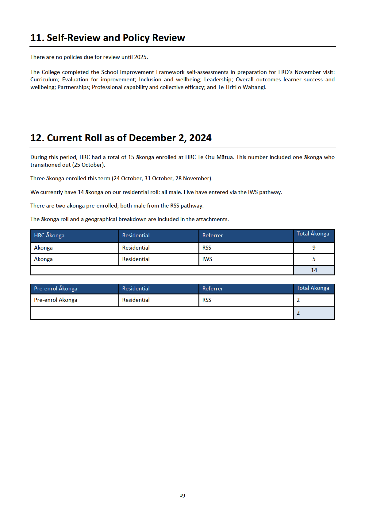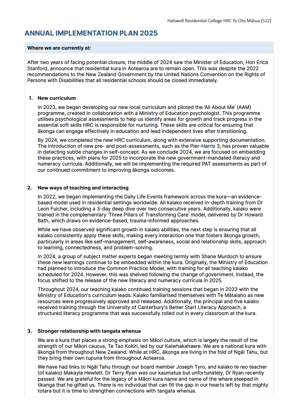 kaiako. We are currently working with ERO on our final School Evaluation Report, which is pleasingly positive. I do hope the